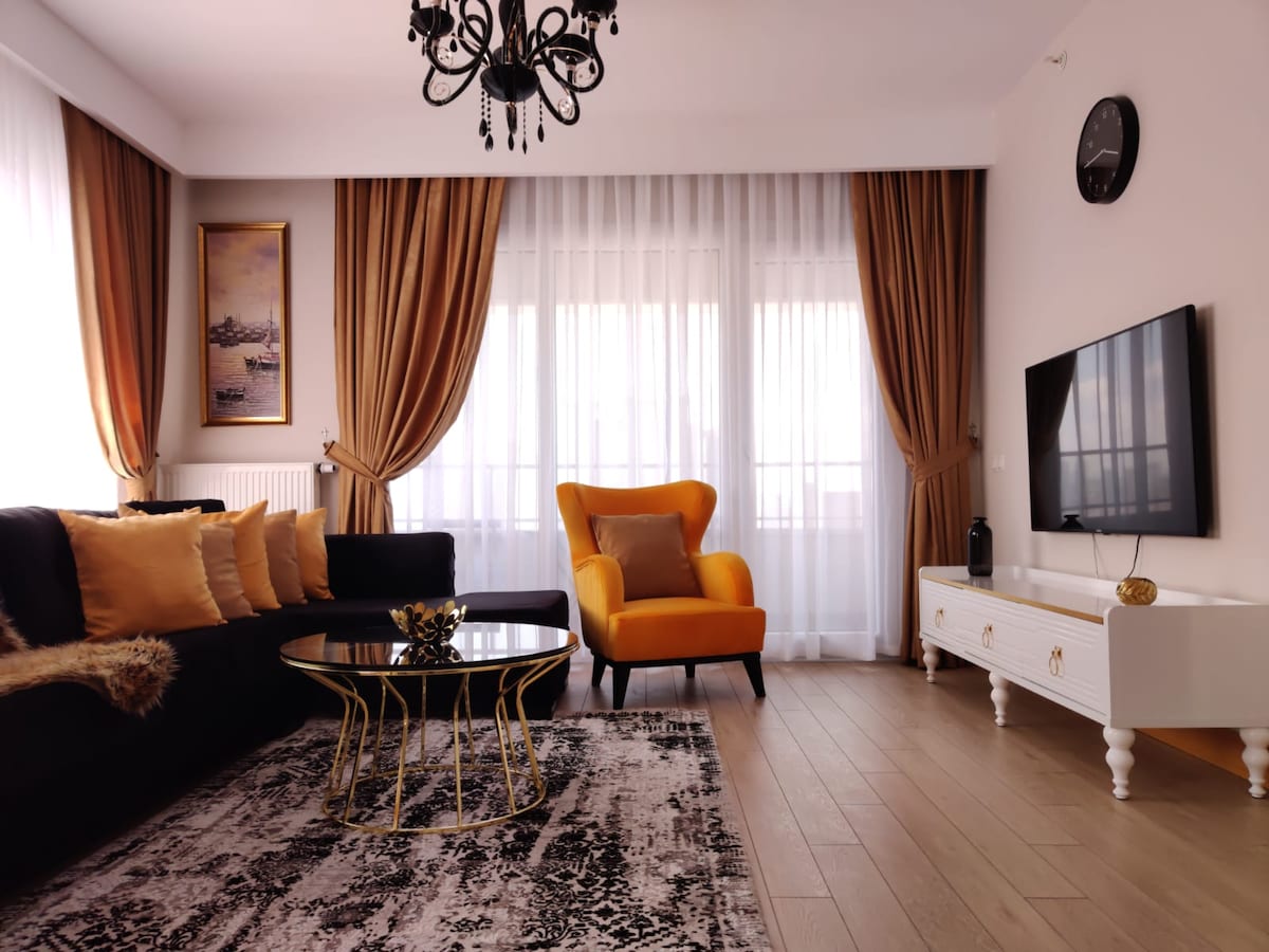 Un appartement moderne et élégant de deux chambres dans une toute nouvelle résidence près du 212 outlet et du centre commercial d'Istanbul qui offre aux voyageurs le séjour le plus relaxant avec un haut niveau de sécurité. Vous profiterez d'un tout nouvel appartement spacieux avec des fenêtres au plafond qui éclaireront l'espace avec beaucoup de lumière naturelle. Le logement dispose d'équipements 5 étoiles et est équipé pour répondre aux besoins de tous les voyageurs, y compris le lave-vaisselle, le chauffage, le lave-linge, la télévision, le WI-FI, le système de chauffage central et divers autres équipements.