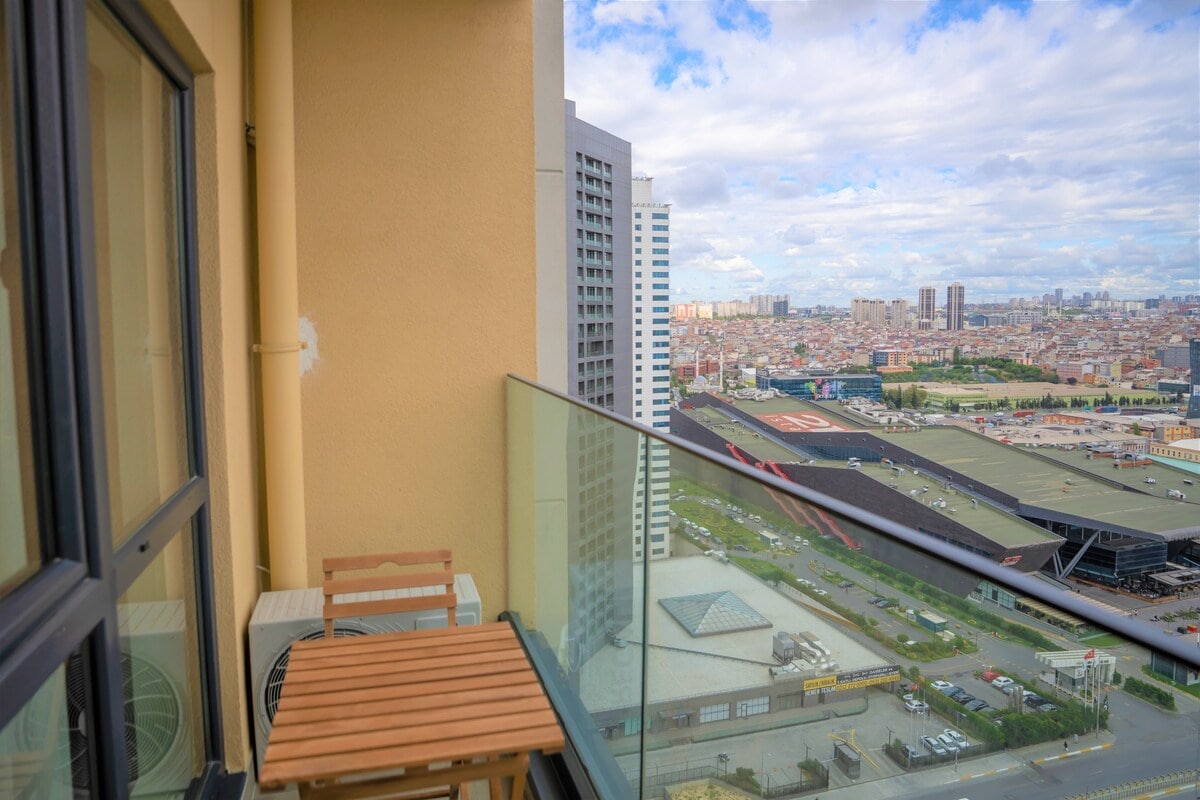 Profitez d'un séjour luxueux au cœur d'Istanbul, alors c'est l'endroit qu'il vous faut ! Un appartement confortable et luxueux, naturellement éclairé, avec une vue imprenable depuis la chambre au 23e étage ! L'appartement est l'endroit parfait pour les couples ou une petite famille de 3 personnes et il est exactement à distance de marche du centre commercial 212 !