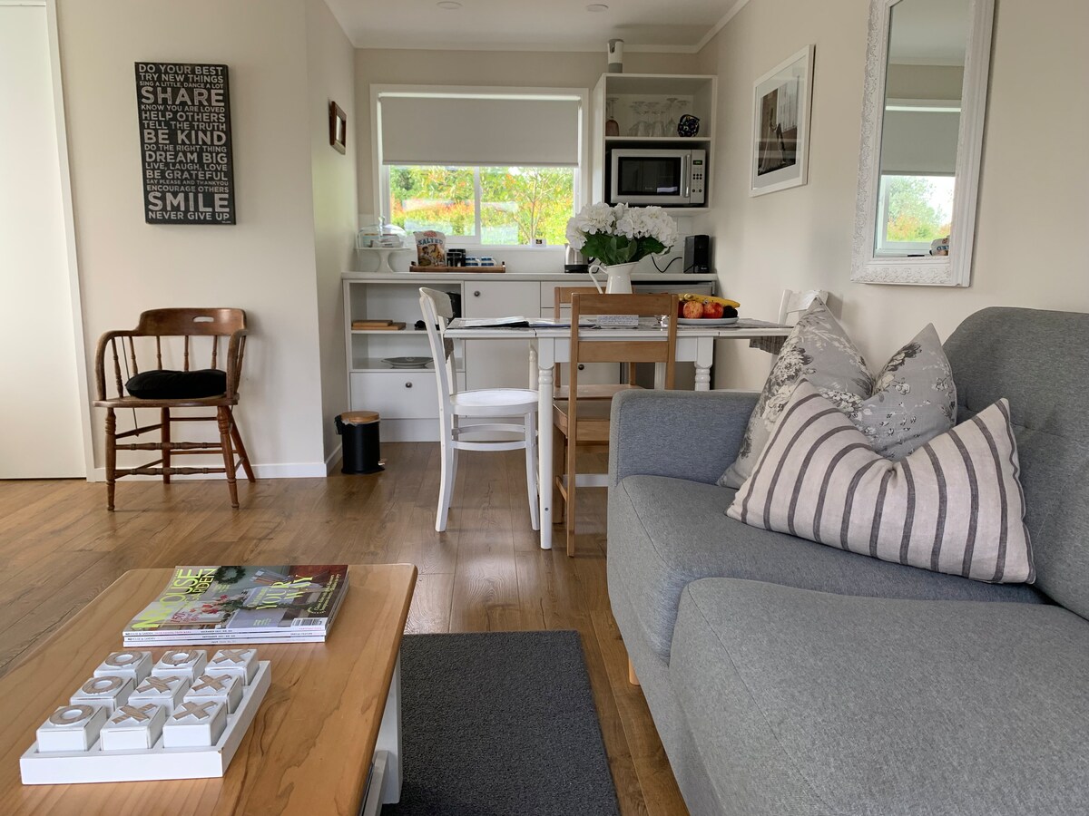 Notre spacieuse maison d'hôtes d'une chambre est attachée à notre maison mais complètement séparée avec sa propre entrée et un parking hors de la rue. La maison d'hôtes est équipée de sa propre cuisine complète, d'une salle de bain moderne, d'un coin salon et d'un bureau. Nous fournissons également du linge de maison, des serviettes, du thé et du café. Nous sommes à proximité de vignobles, de boutiques, de plages de la côte ouest, de restaurants, de VTT, d'aventures dans les arbres et de nombreux autres services de vente au détail. Notre logement est adapté aux couples, aux aventuriers en solo et aux voyageurs d'affaires.