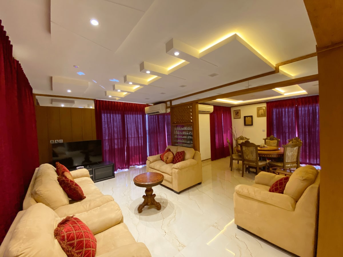 Découvrez le mélange parfait de confort et de charme du Moyen-Orient dans notre appartement entièrement meublé de 3 chambres. Situé à seulement un jet de pierre de la plage, cet emplacement privilégié offre un rapport qualité-prix inégalé pour votre séjour. Idéal pour les familles, notre appartement spacieux offre suffisamment d'espace pour s'amuser sans fin. Nos équipements comprennent la climatisation dans chaque chambre, une cuisine bien équipée, un sèche-linge et un lave linge, une télévision connectée avec accès Wi-Fi, une planche à repasser, et plus encore.