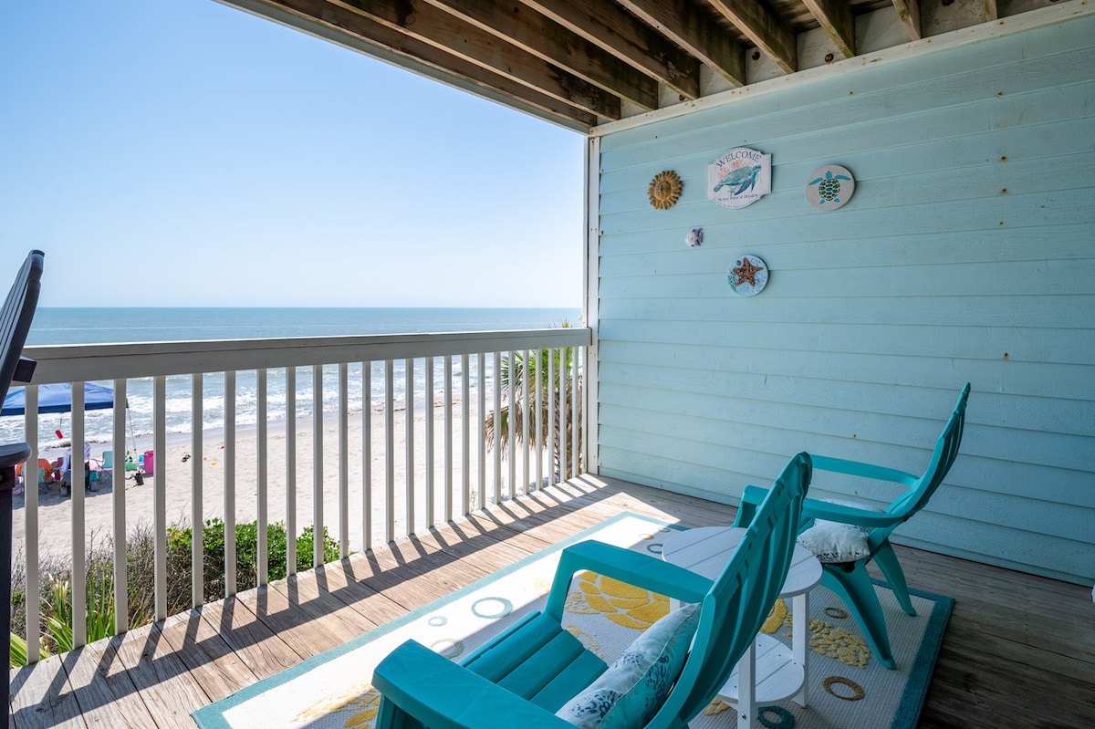 Ce logement paisible offre un séjour détente pour toute la famille. Détendez-vous dans le luxe à Surf Vibes ! Vous ne pouvez pas être plus près de l'océan qu'ici. Ce condo au dernier étage avec deux chambres et deux salles de bain peut accueillir 7 personnes. Sentez le stress disparaître avec une vue illimitée sur l'océan depuis le séjour et la chambre principale. Regardez les dauphins s'ébattre depuis le grand balcon Oceanside pendant que vous sirotez votre café du matin. Profitez en famille de ce fabuleux logement qui offre de bons moments en perspective.