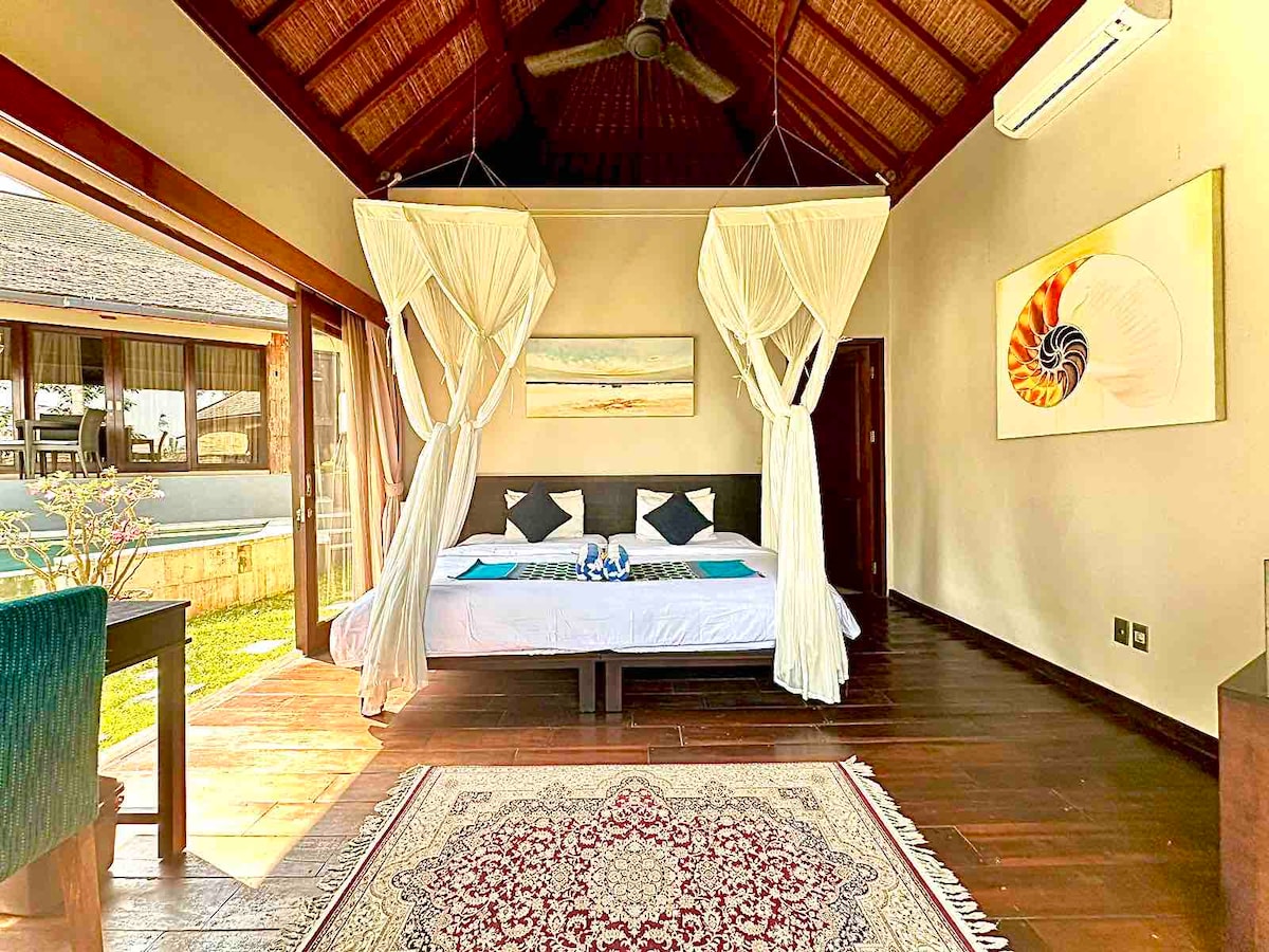 ** Notre personnel est ENTIÈREMENT vacciné et nous suivons strictement le protocole COVID d'Airbnb ** - Villa d'une chambre parfaite pour un moment romantique - Piscine privée. - Emplacement idéal sur la route principale à 200 m des restaurants et spas - Belle plage de Padma (sable blanc) à 950 m - Escapade romantique parfaite - Petit déjeuner sur demande // Non inclus // 50k IDR supplémentaires + frais d'épicerie - Un lit supplémentaire sur demande