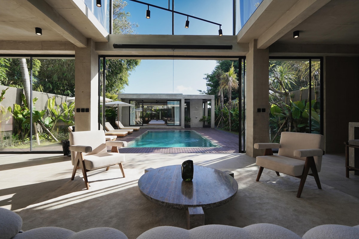Villa tropicale flambant neuve au cœur de Canggu • 2 chambres climatisées élégantes avec vue sur la jungle • Salle de bain attenante avec équipements, pantoufles et sèche-cheveux • Grande piscine entourée de verdure pour se détendre et faire des barbecues • Aménagement minimaliste élégant avec cuisine ouverte et salle à manger • Wi-Fi 300 Mbit/s pour le travail ou la diffusion en continu • Netflix et PS5, équipements pour bébé et barbecue sur demande • Nettoyage quotidien avec des serviettes et des draps propres. • Service de conciergerie pour les réservations de spa, les scooters, les cours de surf et plus encore