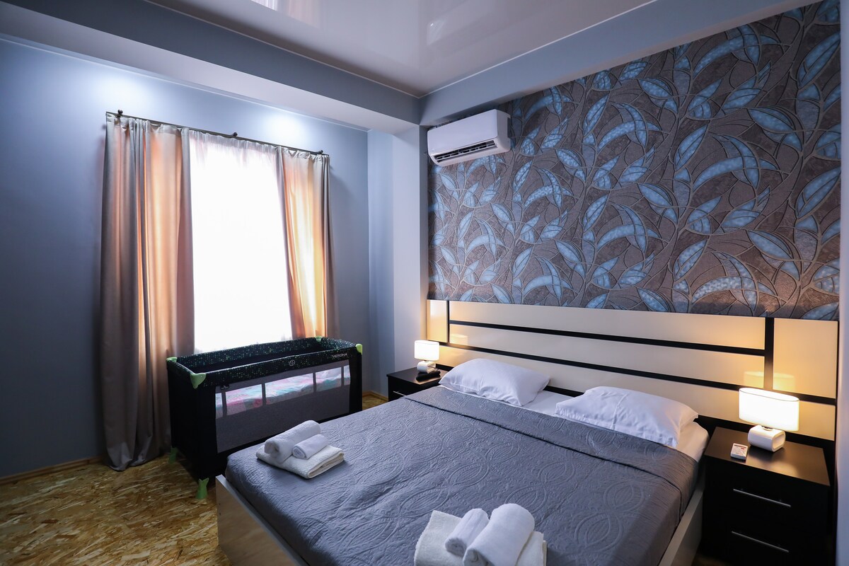 Хорошее отопление зимой и кондиционирование летом. Свой санузел в комнате, рабочее место, шкаф и телевизор. Всего 3 комнаты на этаже. Стабильный и быстрый интернет. Общая миникухня на вашем этаже: микроволновка, чайник, холодильник, посуда. Большой балкон на вашем третьем этаже с видом на горы и стадион. В пешей доступности огромный рынок, автовокзал, парк, бассейн и стадион.