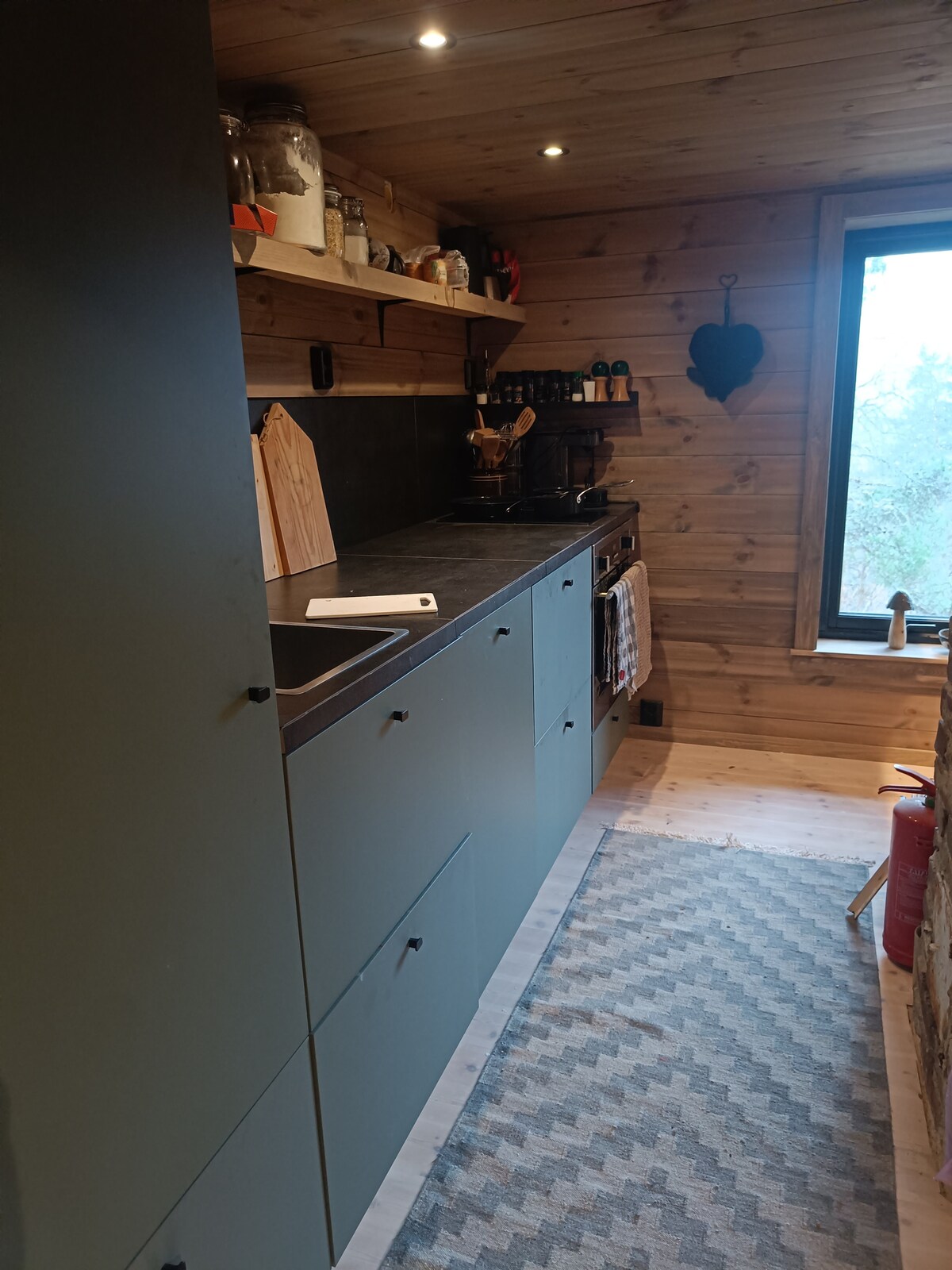 Il s'agit d'un petit chalet confortable sur roues comme vu dans la série télévisée (Tiny House), il est situé à la ferme familiale Dysvik. À DysvikFarm, il y a une production laitière norvégienne traditionnelle, il y a de grandes possibilités de pêche à la fois dans le fjord et dans les montagnes, il y a aussi de beaux terrains de randonnée.