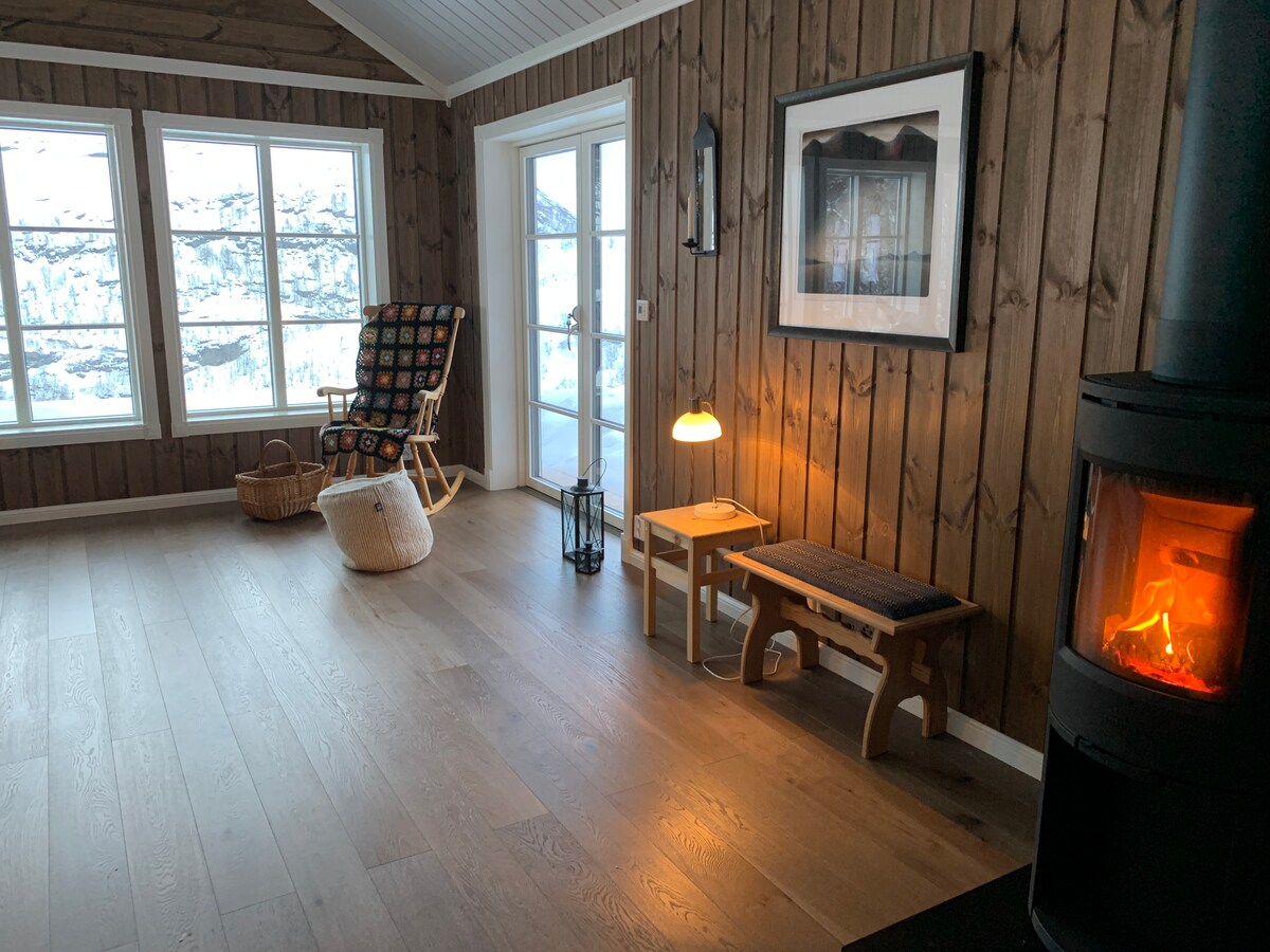 Cabane conçue par un architecte avec une vue imprenable sur le Hardangerfjord. Endroit confortable et lumineux, avec cheminée et chauffage au sol dans chaque pièce. Baignoire et douche dans la salle de bain avec vue également. Draps et serviettes inclus. Machine à laver disponible dans la salle de bain. Parking spacieux pour plusieurs voitures. Zone très calme et relaxante sans circulation de voiture. Idéalement situé pour des randonnées dans les environs. Possibilité d'aller skier en été sur le glacier Folgefonna au-delà de Jondal.