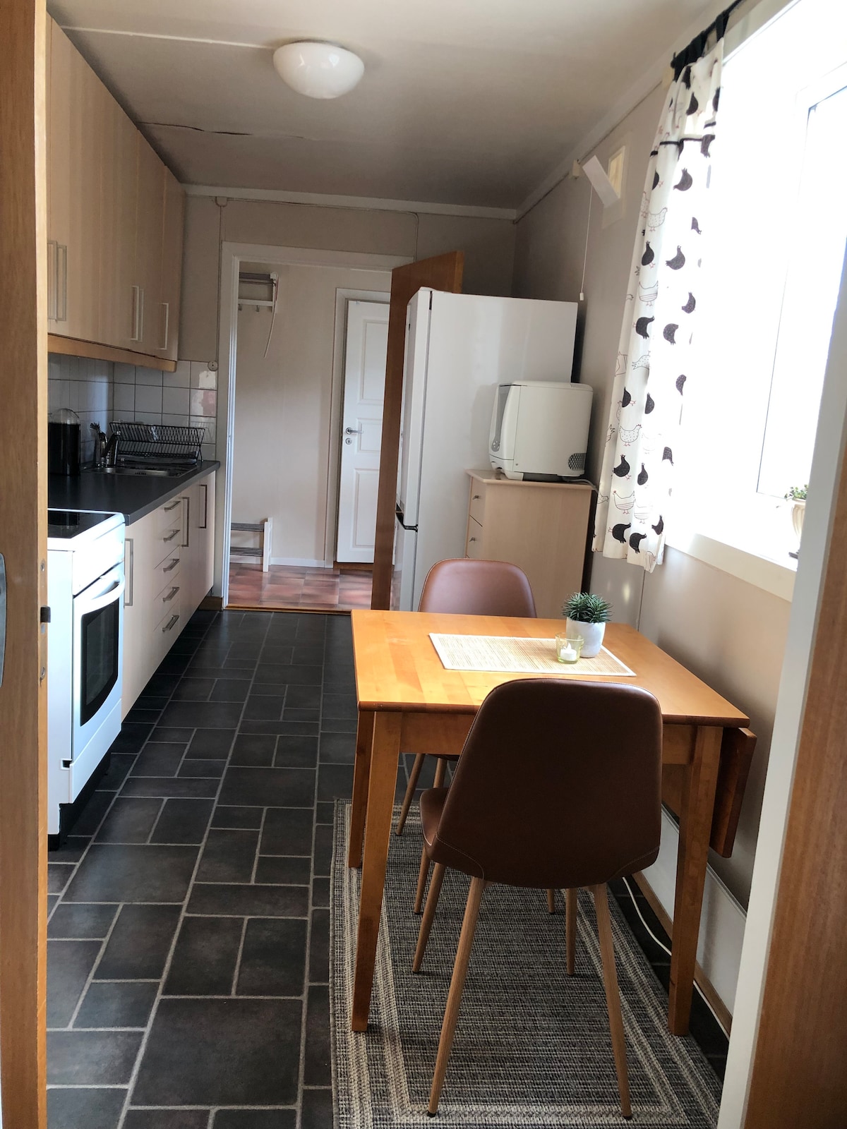 Inclus : linge de lit, serviettes, électricité, bois pour la cuisson et le nettoyage. Appartement plinthe récemment rénové dans une ferme Nous vivons dans une des maisons et louons également une cabane et l'appartement à l'étage sur AIRBNB. ("Rofshus2" et "Lita cabane dans ferme ensoleillée") Patio avec table, chaises et barbecue. Superbe vue sur Totak et les montagnes. À 5 min en voiture du centre-ville avec des commerces et des sentiers de ski de fond. À 10 min des centres de ski. Excellente CONNEXION WI-FI. Excellentes possibilités de randonnée estivale Chargeur pour voiture électrique à 5 minutes.