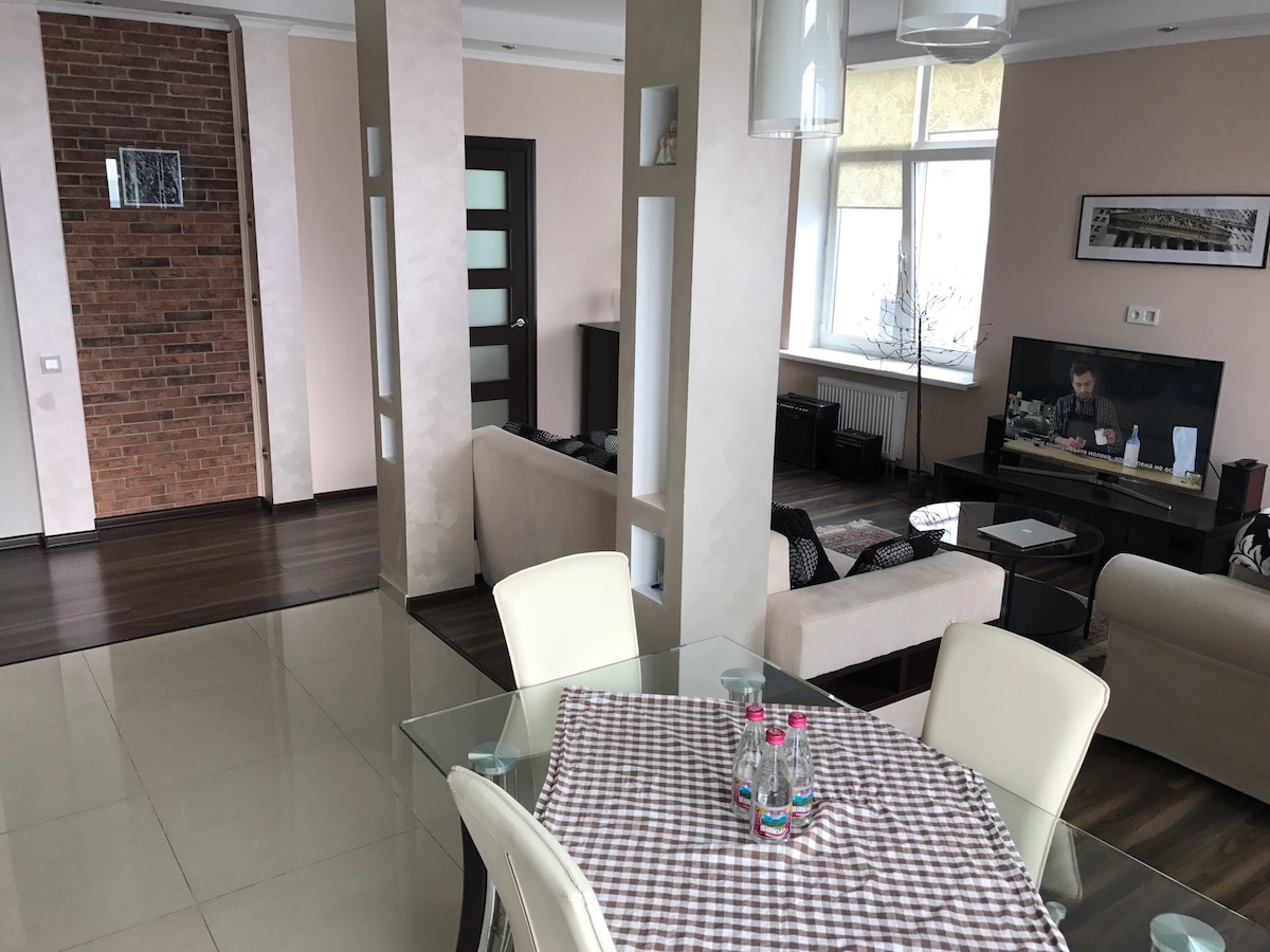 Appartement dans une maison de classe affaires. Rénovation élégante dans des tons clairs. Équipé de tout l'équipement nécessaire pour un confort Idéal pour les loisirs et les voyages d'affaires. La maison dispose de trois restaurants (cuisine européenne, italienne et méditerranéenne) ; salle de sport ; parking sécurisé. De l'autre côté de la rue, à 2 minutes à pied, il y a un grand supermarché « Novus ». À 5 minutes à pied du centre commercial « Komod » qui dispose d'un cinéma moderne Multiplex. Le Centre international des expositions est à 200 mètres.