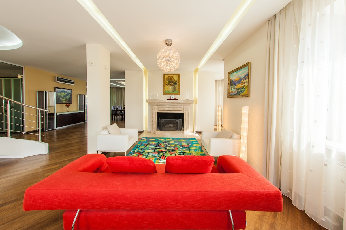 This is one of a kind, a self contained apartment artistically decorated by a professional designer from the Netherlands. It has a spacious living room, bedroom, kitchen and bathroom with extra large shower cabin. It is suitable for a couple or with extra surcharge for 4 people. Ideal for long term rental. The apartment is settled in the central part of Kiev, on the 2nd floor of a 4-storey building of 1952 with unique architectural features, high ceilings and round bay window.