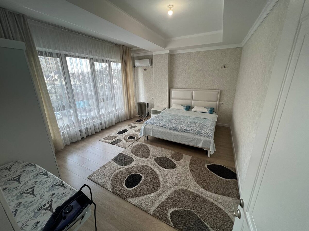 Enjoy to stay in a stylish apartment. Absolutely new, bright, spacious apartment in a new residential complex with a new renovation. Cozy bedroom with a large bed (180*200) with an orthopedic mattress. Kitchen-living room with all necessary for a comfortable stay. The windows offer a beautiful view of the city and the beautiful mountains. Walking area along the entire area with parks, shops,bars, nightclubs, restaurants and cafes. 10minutes walk to the central square Ala-too.