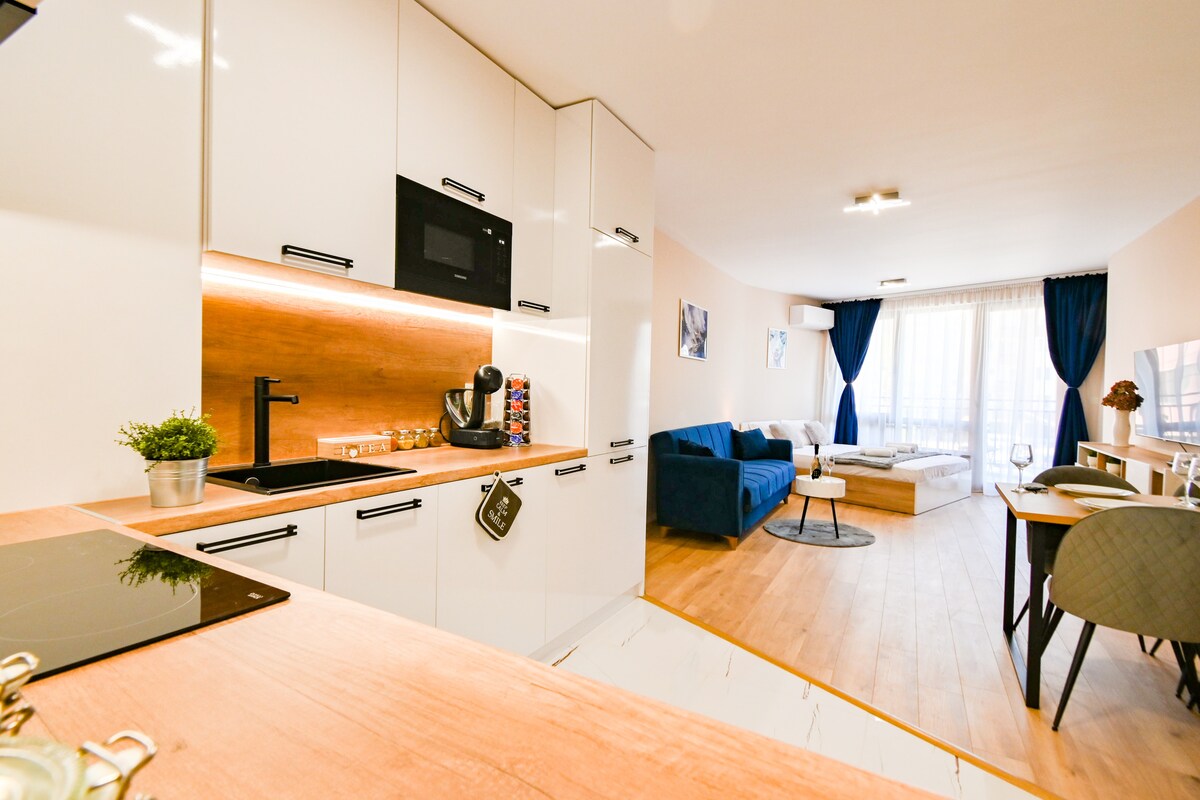 Découvrez Sofia depuis cet élégant appartement de deux chambres entièrement équipé, parfaitement situé entre le centre-ville et la pittoresque montagne Vitosha. Que vous soyez en visite pour des aventures en montagne ou pour une exploration urbaine, cette retraite sereine offre le mélange idéal de confort et de style.