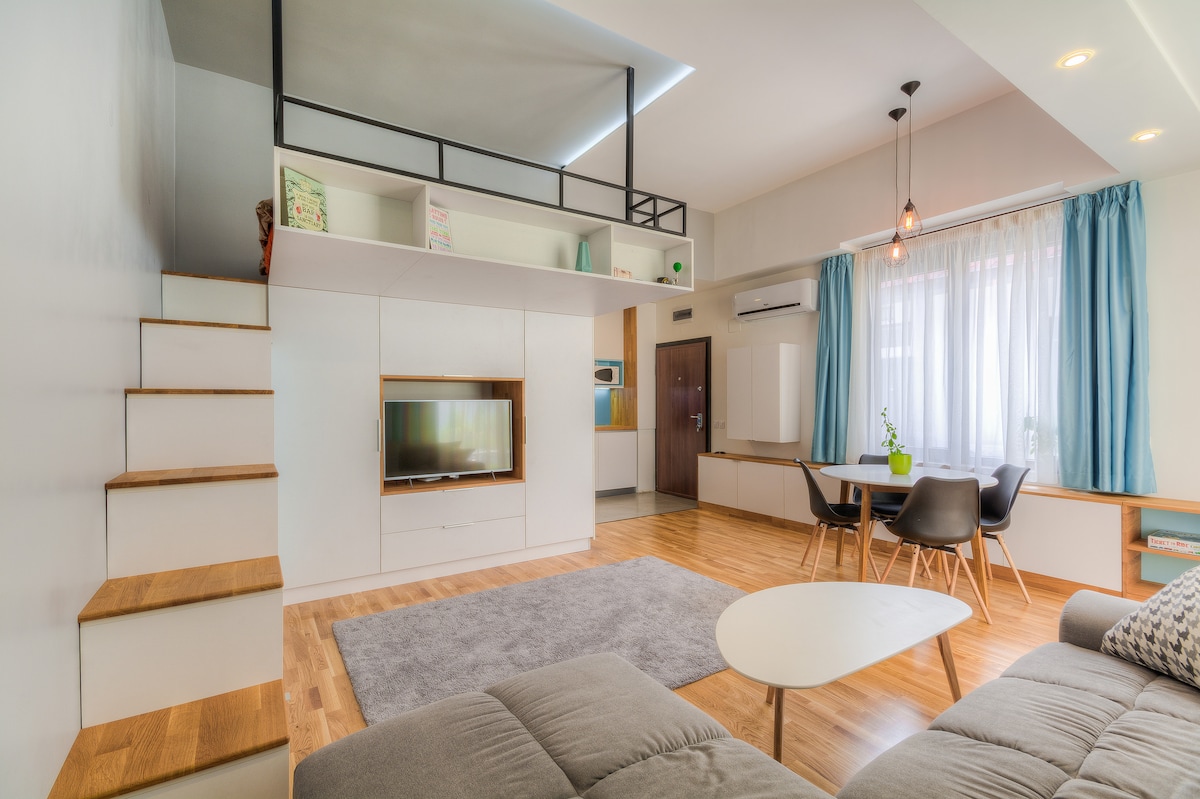 Découvrez le confort et le style dans l'appartement design 1BR de Valka et Yavka. Récemment rénové et meublé de manière moderne, notre espace confortable dans l'est de Sofia est parfait pour les voyageurs Bleisure (Business + Leisure). Profitez d'un cadre résidentiel paisible avec un accès rapide à l'aéroport, au centre-ville, aux magasins et aux quartiers d'affaires en métro ou en voiture. Nous sommes à proximité d'une station de métro, IEC, Sky Fort, Sofia Office Center, etc. Découvrez le mélange idéal de tranquillité et de commodité pour un séjour inoubliable à Sofia !