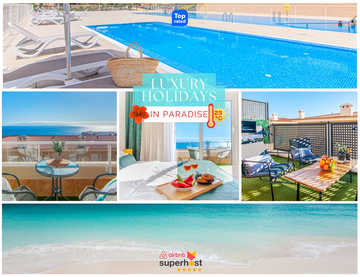 Luxueuse maison de 3 chambres avec une vue imprenable sur la mer, barbecue à gaz et parking privé. SmartTV et internet Fibre 300mb (tout compris en prix). Il dispose de 2 chambres à l'étage supérieur et la troisième chambre (avec un canapé-lit) est située à l'étage du garage. Comprend 2 salles de bain complètes avec baignoire et 1 toilette, cuisine entièrement équipée et terrasse. Il comprend l'utilisation d'une piscine pour adultes et d'une piscine pour enfants communautaires avec solarium et hamacs. Nous vous attendons au paradis !