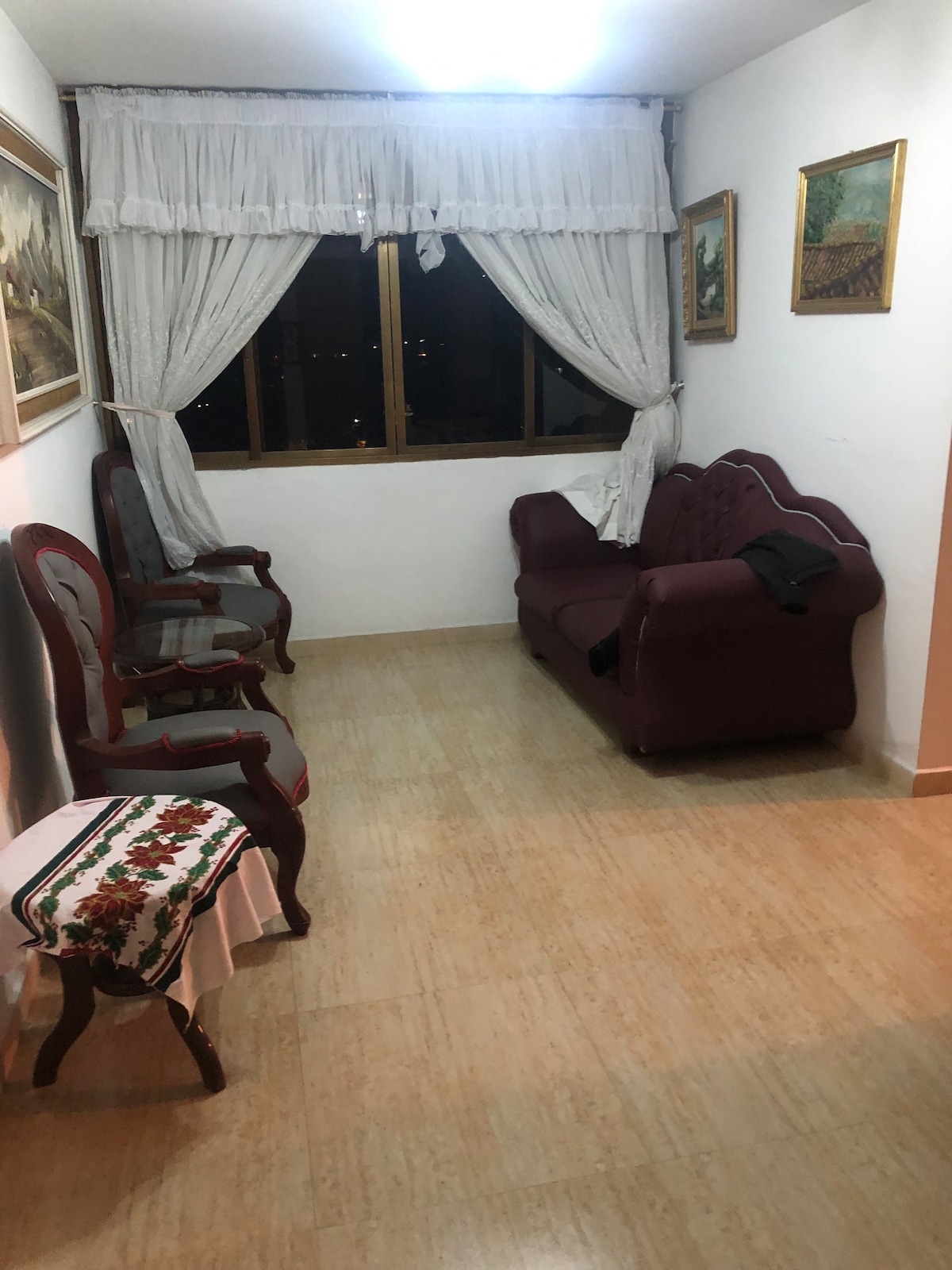 Appartement situé dans le centre-ville, à proximité des supermarchés, du téléphérique, du marché principal et de la Plaza Bolivar. Avec tous les services de base, lampes de secours, 2 climatiseurs, wifi, UPS et parking. L'appartement dispose d'un lit Queen Size, de 2 lits simples et d'un canapé-lit, de 2 salles de bains, d'un balcon de type studio, d'un salon, d'une télévision de 50 pouces, d'une cuisine équipée : réfrigérateur, mixeur, cafetière, micro-ondes, ustensiles, chauffage, lave-linge et sèche-linge. Il offre des serviettes et du linge de maison