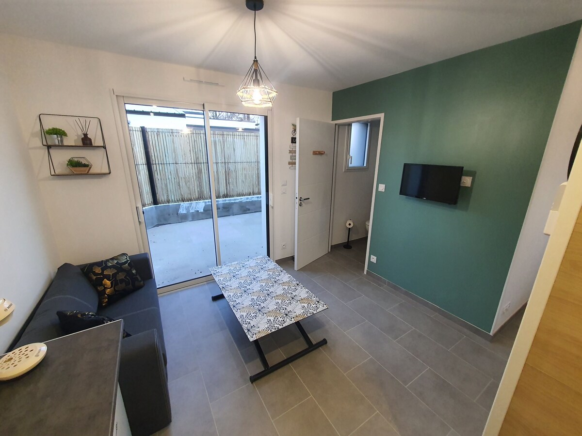 Charmant studio de 20m² au fond du jardin d'une maison en bord de mer face à la plage. Coin salon avec canapé convertible rapido, coin cuisine, salle de bain (WC, douche à l'italienne), terrasse privative. Commerces à 1,3 km par route ou chemin côtier, animations estivales de quartier, plages et nombreuses criques à proximité. Accès internet (fibre et wifi). Draps et serviettes non fournis (sauf option). Si besoin de lit bébé, linge, vélos, s'arranger avec la propriétaire.
