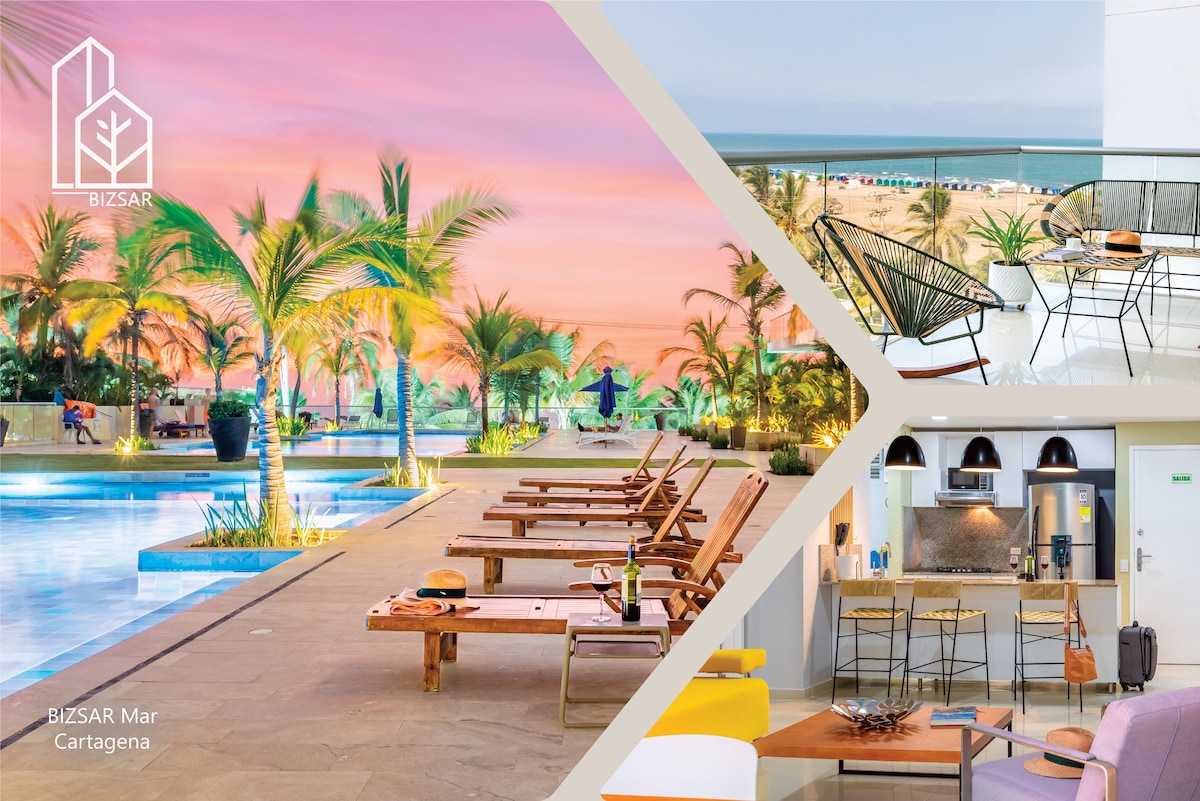 Vue sur l'océan 5 étoiles, lit King Size, Bocagrande, étage 34|Piscine