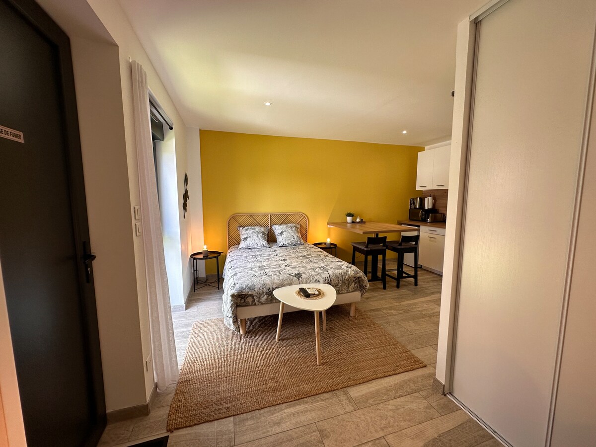 Charmant appartement climatisé, entièrement neuf, composé d’une entrée indépendante avec un grand sas, une pièce de vie avec salon (canapé convertible) et cuisine. Une grande chambre avec un lit de 160 cm et petit dressing, et d’une salle de bain avec douche italienne, vasque et WC. L’appartement est mitoyen avec la maison que nous habitons mais à une entrée complètement indépendante. Vous pourrez profiter pleinement du jardin. le parking est clos et est sous surveillance.