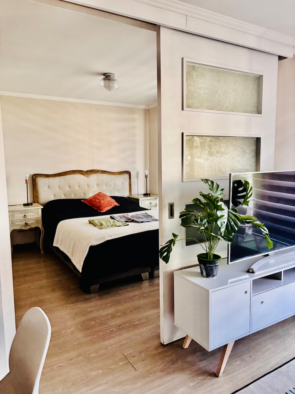 Bienvenue dans notre appartement studio moderne et impeccable, pensé pour rendre votre séjour pratique, calme et sans soucis. Il est situé à seulement 3 pâtés de maisons du métro Parque Almagro, dans le centre de Santiago. L'espace est soigneusement préparé pour que vous vous sentiez comme chez vous : propre, bien équipé et avec une distribution fonctionnelle qui vous plaira. En outre, il est situé tout près de la Movistar Arena, du parc O'Higgins, de Fantasilandia, du théâtre Caupolicán et du théâtre Cariola.