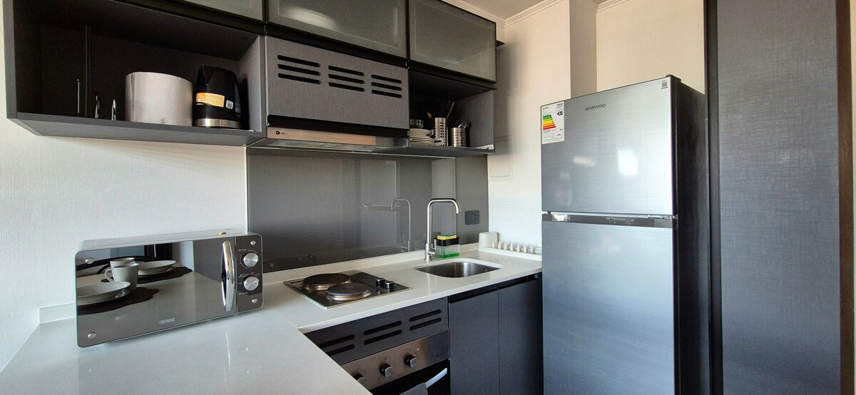 Profitez de cet appartement moderne et confortable. Avec balcon, parfait pour se reposer ou travailler confortablement, avec une cuisine entièrement équipée, le WiFi et un design élégant qui allie chaleur et style. Situé à 4 min du métro Lo Ovalle avec un accès rapide aux autoroutes, cafés, supermarchés, hôpitaux idéal pour les couples, les voyageurs d'affaires ou les courts séjours à Santiago. 🛋️ Living avec canapé confortable 🍳 Cuisine équipée avec four, micro-ondes et bouilloire 🌞 Balcon avec lumière naturelle 💻 Wifi haute