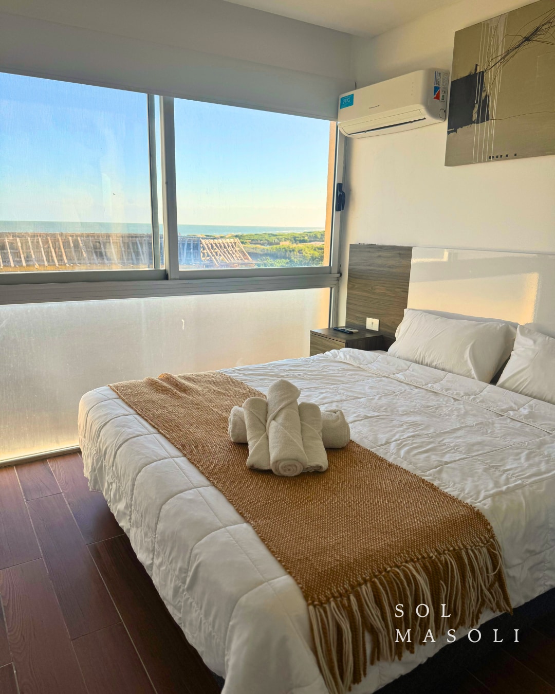 Appartement dans un complexe fermé imbattable - North Beach Pinamar, face à la mer : piscine extérieure, complexe sportif, piscine chauffée, salle de sport, courts de paddle, tennis, basket-ball et football. Golf de 9 trous 2 pièces spacieuses (72 m2). Balcon terrasse de 42 m2 avec barbecue. Salle de bain complète, dressing. Serrure électronique et surveillance privée 24 h/24. Wi-Fi, TV et climatisation dans les deux pièces. Lave-vaisselle, lave-linge et autres équipements pour la cuisine.