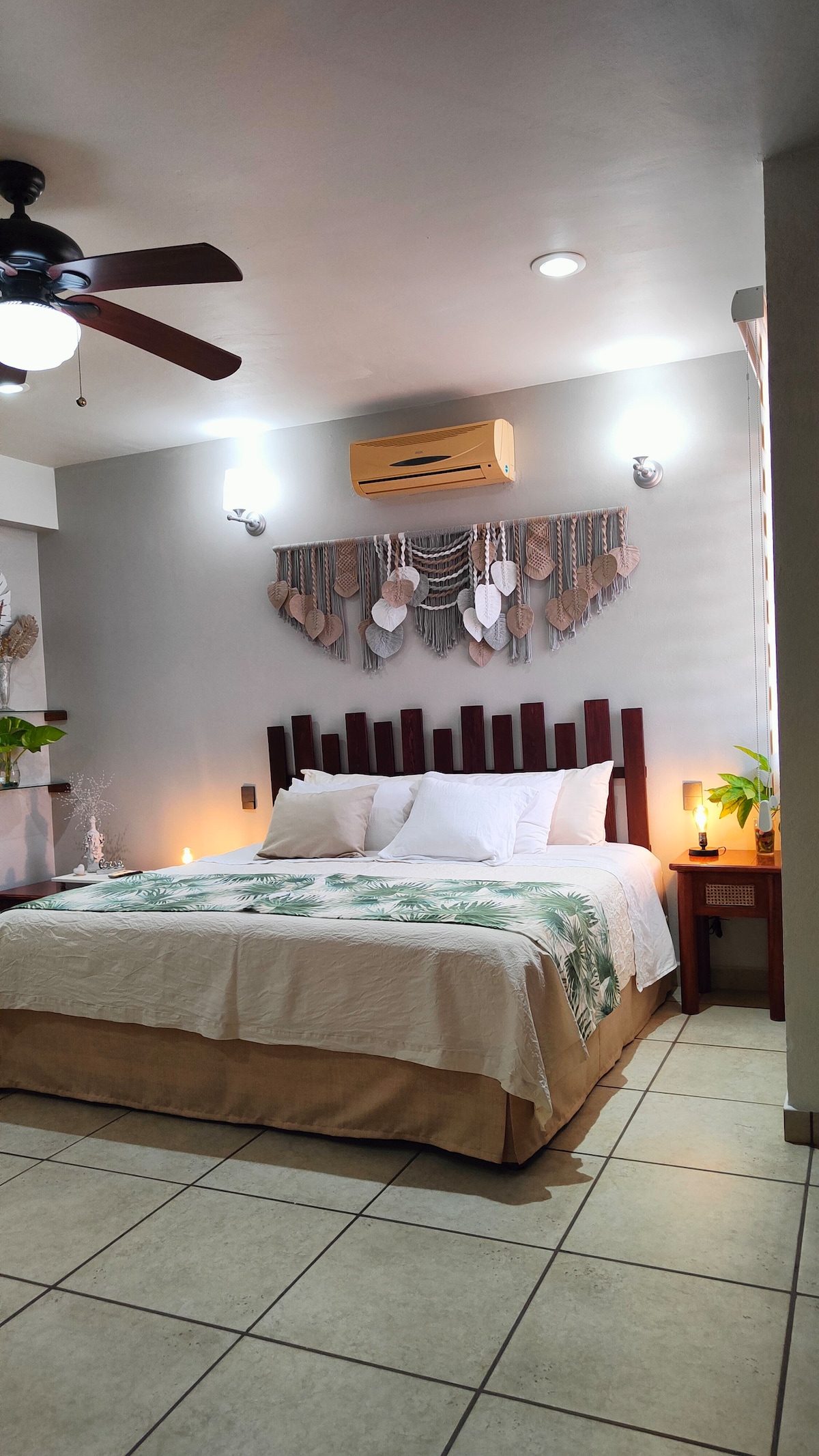 Habitación amplia, tranquila y confortable, perfecta para descansar después de un día de actividades en la playa. Tiene baño privado dentro de la habitación, aire acondicionado, ventilador y WiFi. La habitación se encuentra dentro de nuestro hogar, ubicado en una zona segura y de fácil acceso. Vivimos en la propiedad, por lo que estaremos disponibles para apoyarte. Como huésped, tendrás acceso a las áreas comunes de la casa. Nos encanta ofrecer un ambiente cálido, familiar y respetuoso.
