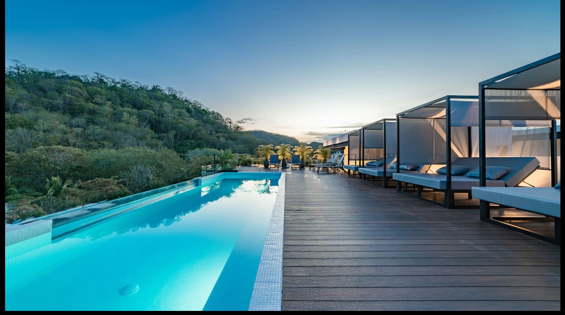 Venez vous détendre dans ce grand et bien aménagé appartement de 3 chambres. Détendez-vous dans les espaces extérieurs spacieux, dînez avec notre cuisine entièrement équipée. Grands lits confortables avec draps pouvant accueillir 8 personnes de vos amis et de votre famille les plus proches. Promenez-vous ou descendez en voiture avec votre propriétaire. Chariot de golf jusqu'à l'épique piscine à débordement Peninsula ici sur la propriété Cosmo. À seulement cinq minutes à pied de la plage d'Arrocito.
