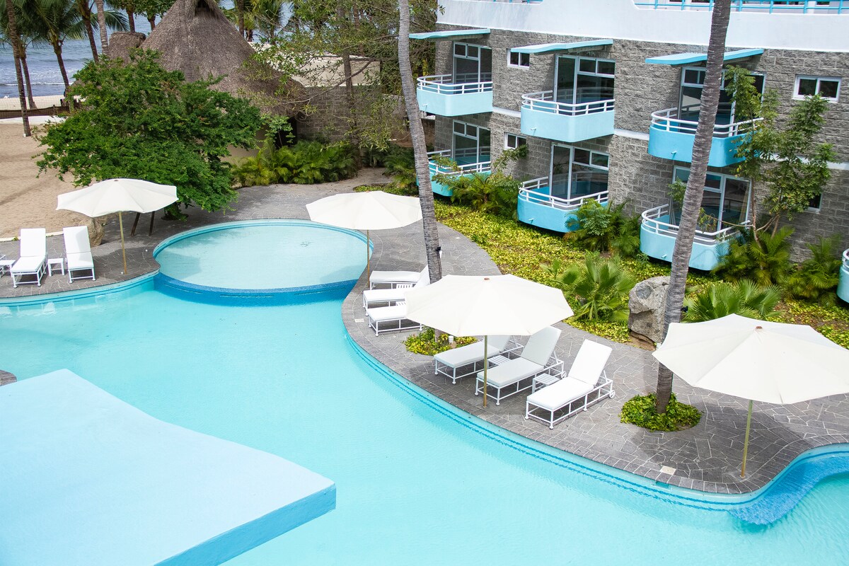 Studio situé à l'intérieur de l'hôtel en bord de mer à Sayulita ; avec tout le nécessaire pour passer un séjour parfait à Sayulita : lit King size, climatisation, connexion Wi-Fi super rapide gratuite idéale pour travailler en ligne ou en coworking, grande piscine, pataugeoire, bord de mer, parking et son meilleur emplacement à Sayulita. Le logement n'a pas de vue sur l'océan. + Vous pouvez réserver plusieurs logements (un par un).