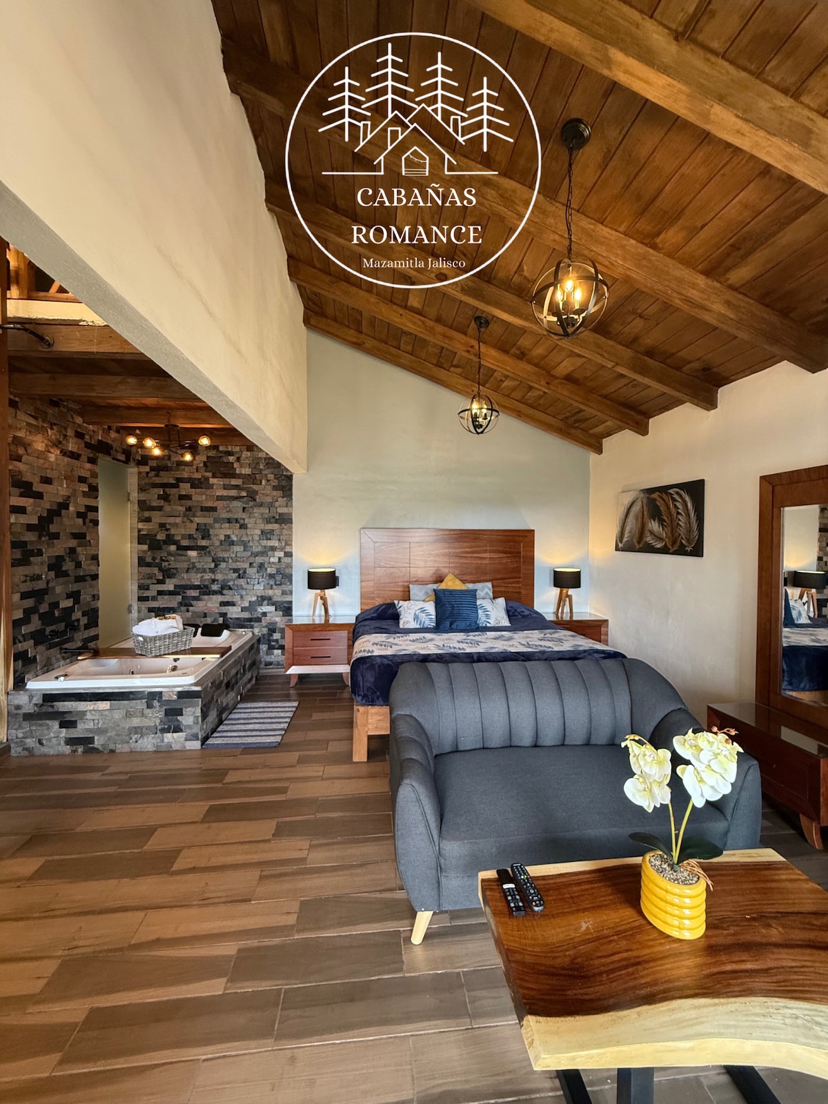 Cabañas Arroyo Mazamitla (Cabane 3), parfaite pour se déconnecter de la ville au milieu de la forêt, à seulement 4 km du centre de Mazamitla, cabane de luxe, chambre principale (king size), bouchon (double), cheminée, cuisine équipée (micro-ondes, minibar, poêle, cafetière, mixeur), avec tous les ustensiles nécessaires, écran T.V avec câble dans le salon, rôtissoire, Terrasse avec vue sur la forêt. WIFI à usage exclusif à l'extérieur (réseaux sociaux et e-mail). Il est dans la rue fermée.