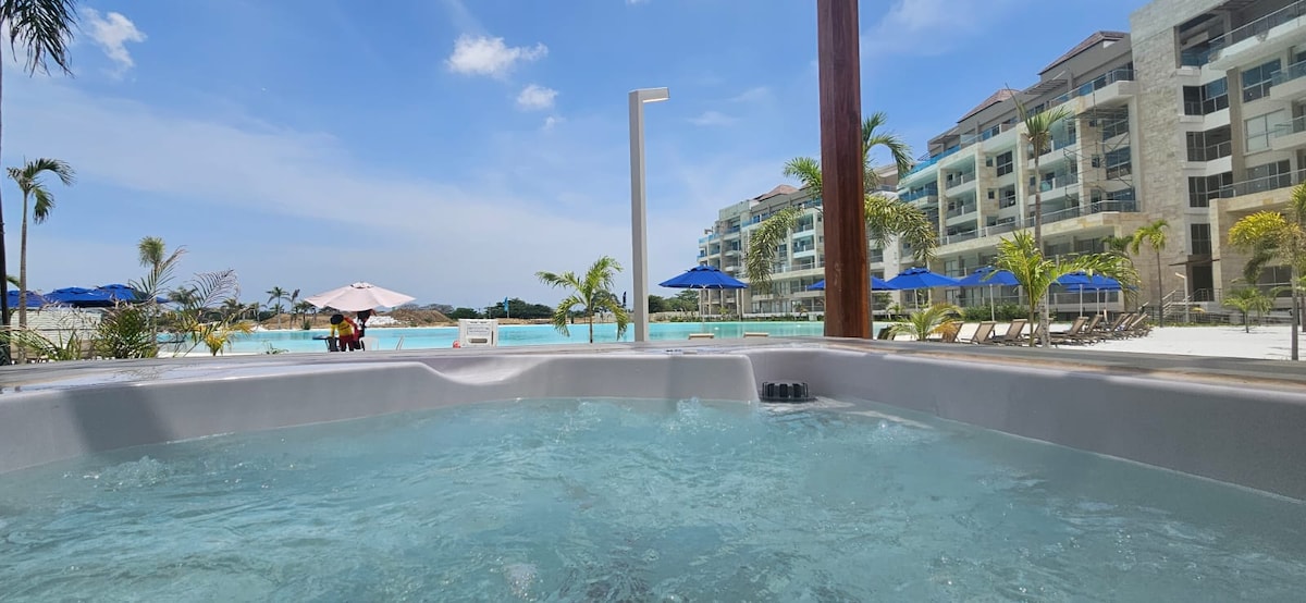 Soyez le premier à profiter de cette destination incroyable à Carthagène, avec les premiers lagons Cristal en Colombie. Cet appartement de 2 chambres pour 6 personnes est entièrement équipé pour votre confort. Les espaces communs comprennent : des parasols et des chaises, des planches de paddle, un jacuzzi, un club de plage et un accès au lagon. Le projet Baia Kristal est en construction, vous risquez donc de faire du bruit pendant les heures d'ouverture. Les parties communes de la tour de l'appartement sont complètes à 100 %.