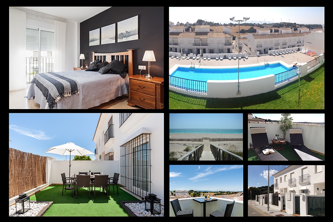 Dans ce logement, on respire la tranquillité : détendez-vous avec toute la famille ! Fantastique maison jumelée située dans un environnement sans égal au sein d'une urbanisation en première ligne de plage avec grande piscine. Dès que vous quittez l'urbanisation, vous trouverez un accès direct sans avoir à traverser les routes qui vous permettra de profiter de promenades inoubliables sur la plage comme par des sentiers avec vue sur l'océan qui vous mèneront au port de pêche caractéristique de Conil.