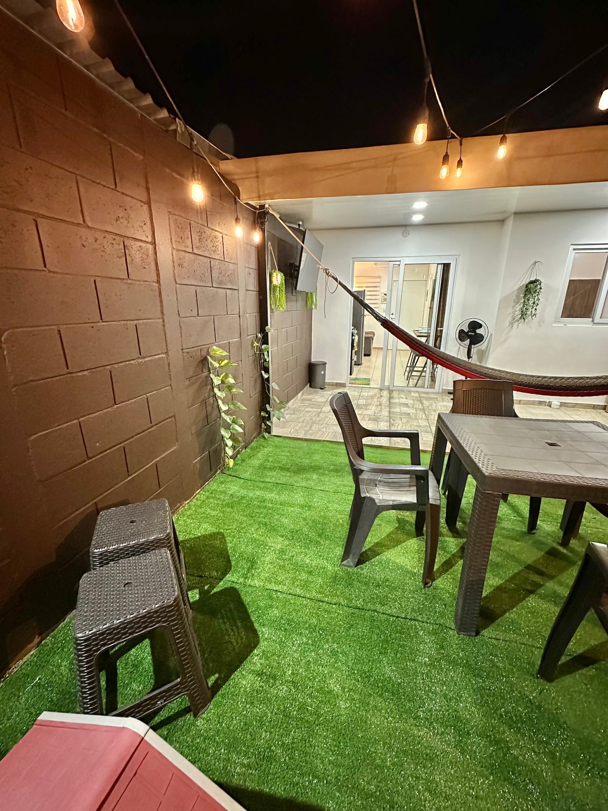 Belle maison de 3 chambres avec 2 salles de bain, cuisine et jardin. In Residencial Bosques de Lourdes. L'ensemble du logement dispose de la climatisation . Eau chaude , distributeur d'eau. Cour arrière avec ventilateur, mobilier de patio pour 4 personnes et barbecue. Lave-linge et sèche-linge. La communauté dispose d'une piscine partagée, d'un parc avec des terrains de basket-ball et de football. Stationnement pour 2 véhicules .