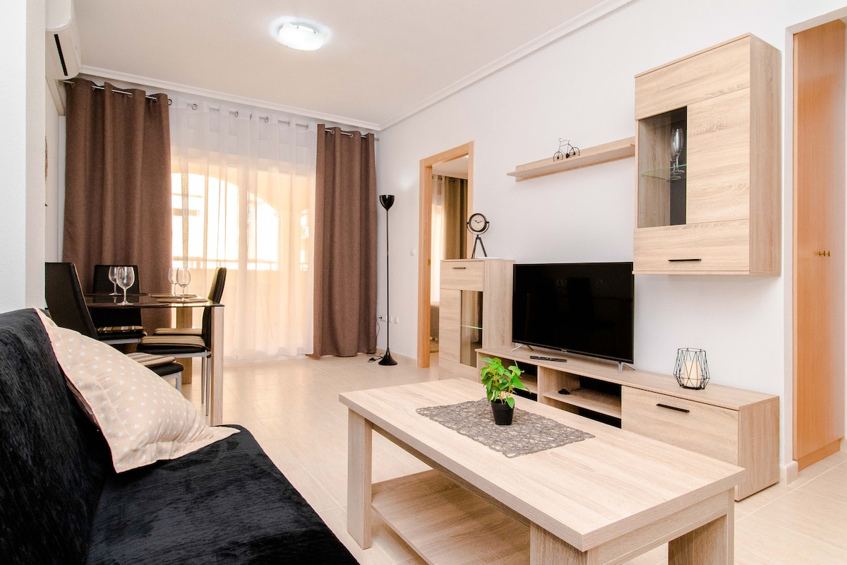 Un bel appartement, prêt à entrer, dans une copropriété calme avec piscine et à seulement 5 minutes de la plage. À proximité, vous trouverez tous les services dont vous aurez besoin. Idéal pour les familles avec enfants car il est équipé d'un berceau, d'une chaise haute et d'une aire de jeux.
