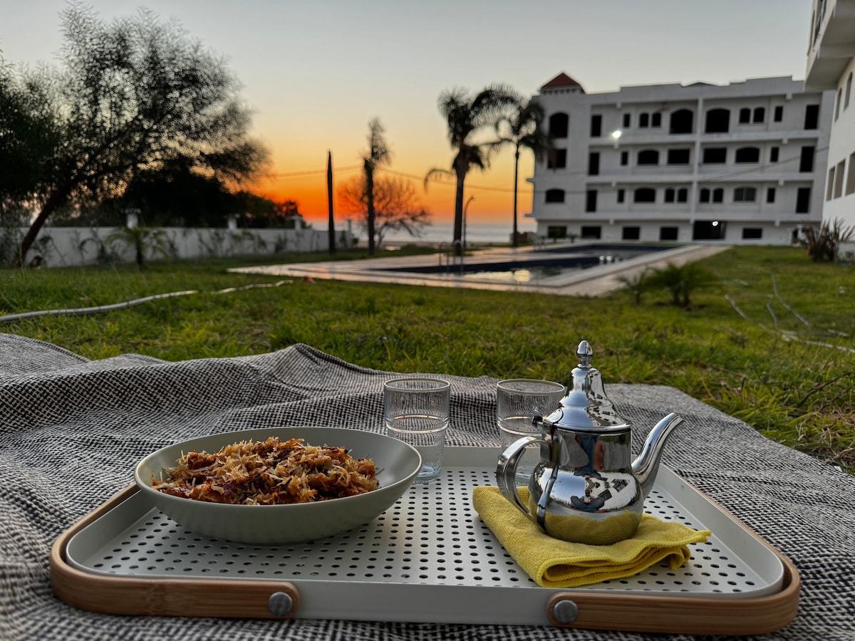 ✨Un havre de paix à Tanger avec vue mer ✨ Offrez-vous un séjour raffiné dans notre appartement OCÉANA, un cadre d’exception avec une vue panoramique sur la mer et la piscine. Profitez d’un vaste jardin et d’une piscine privée et chaque soir, laissez-vous émerveiller par un coucher de soleil spectaculaire sur l’horizon marin. À 5 min de la plage et 13 min de l’aéroport, avec parking privé gratuit et gardiennage nocturne, pour un séjour paisible et un confort optimal.
