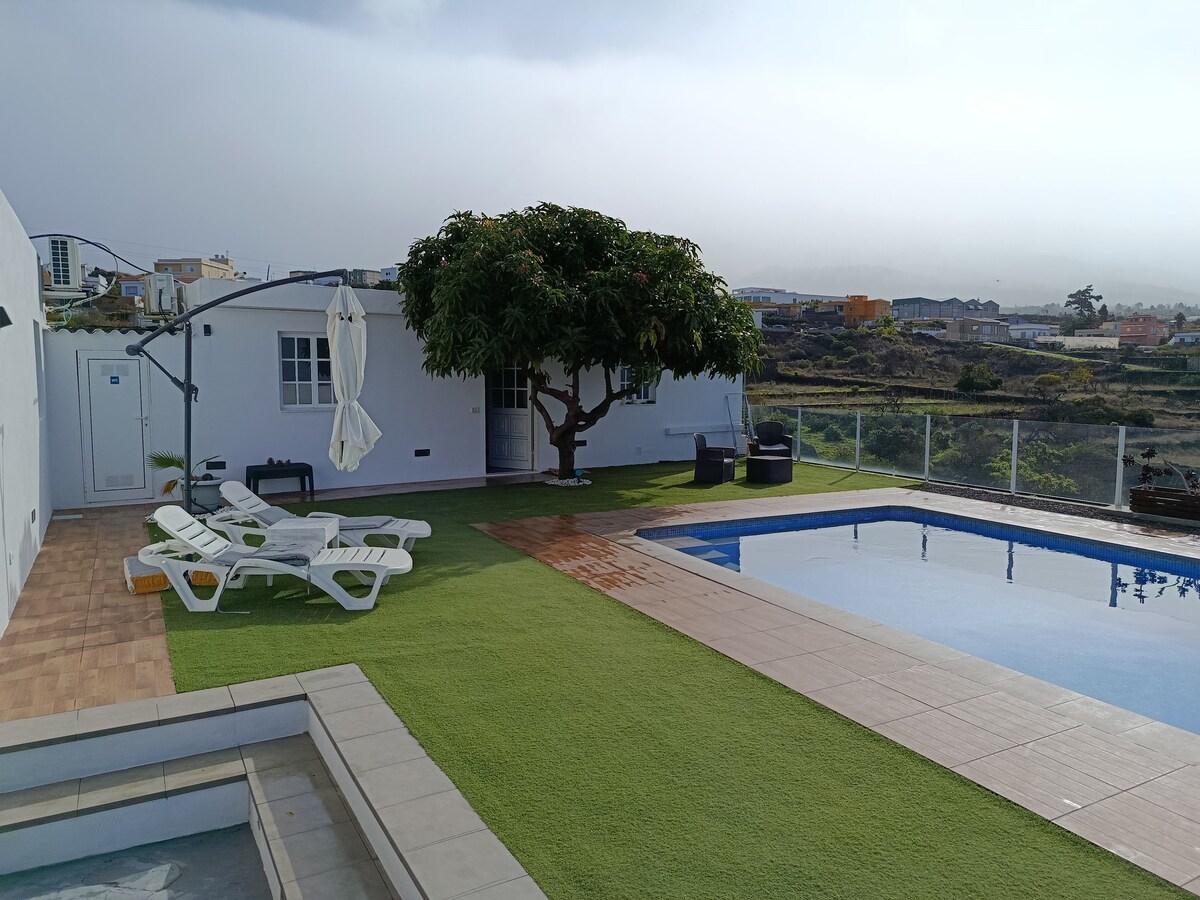 Jolie maisonnette de style canarien, avec des plafonds en bois. Très bien située et desservie, dans un quartier calme. Près du restaurant Parrilla Casa Pancho, supermarché local et arrêts de bus. Terrasse avec une vue magnifique sur mer et montagne.