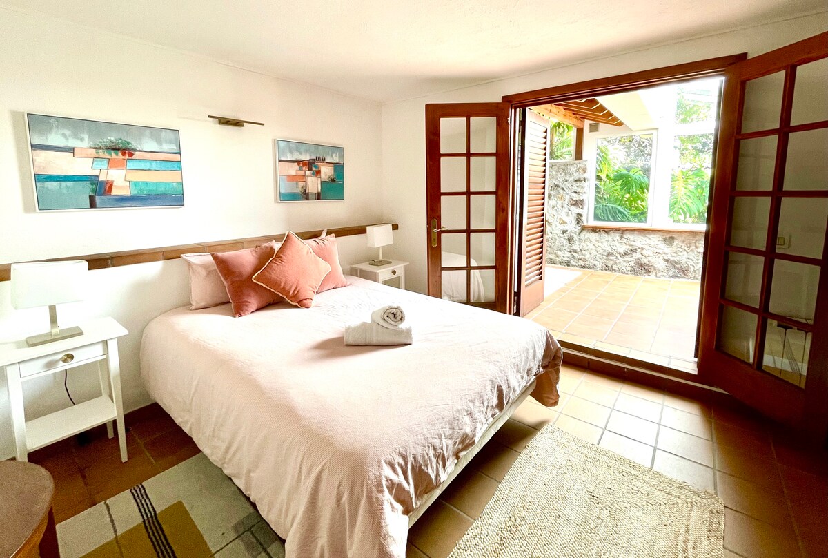 Bienvenue - La nature guérit ! Ici, tu trouveras une tranquillité absolue et je te garantis une détente et un repos total. Les plus beaux sentiers de randonnée se trouvent juste devant la porte. Le centre-ville et la plage sont à 4 kilomètres. Le village de San Pedro est également à seulement 4 kilomètres. Le bon restaurant le plus proche s'appelle ALMENDROS, et il est à 1 km de la maison d'hôtes. Ici, aucune climatisation n'est nécessaire.