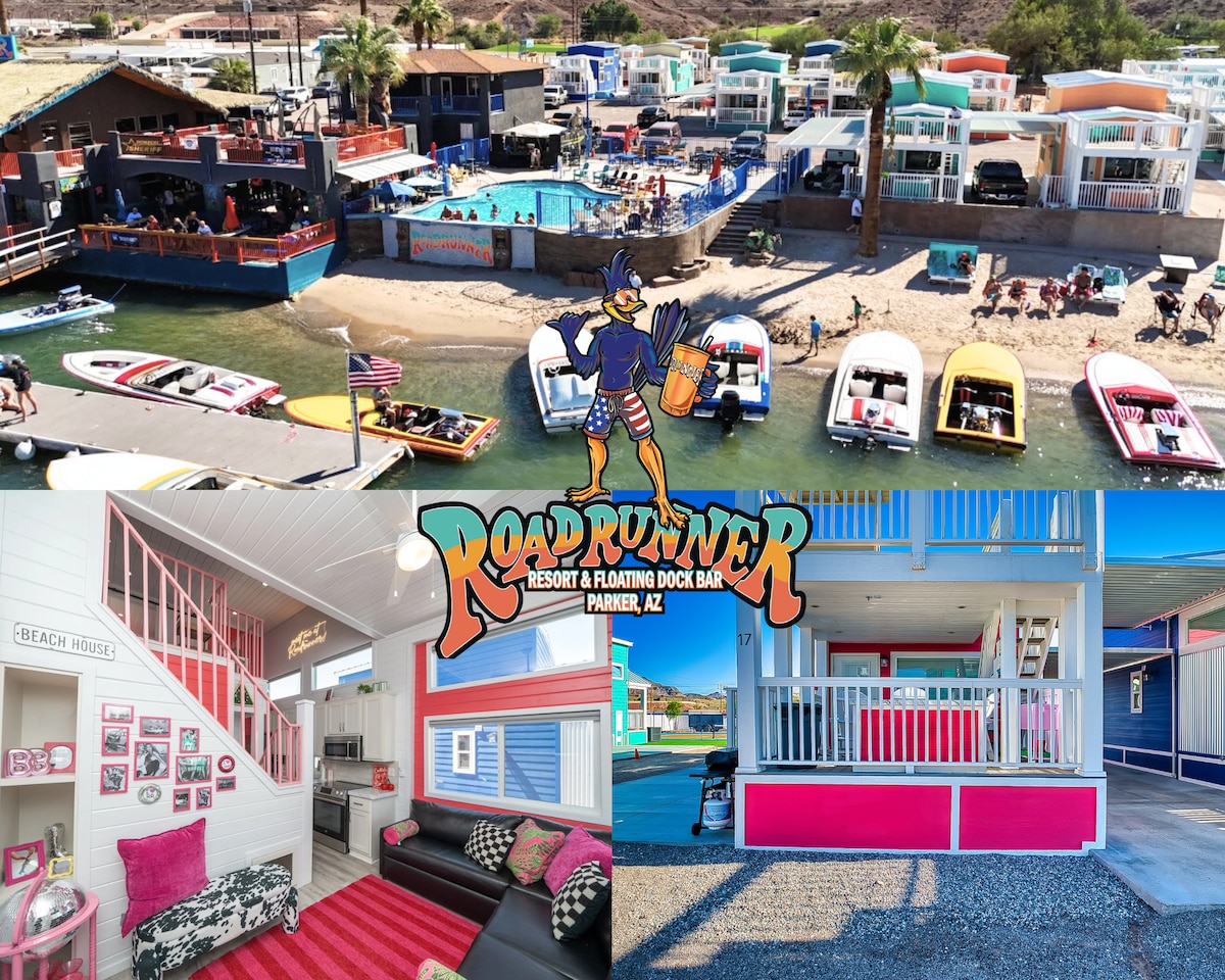Bienvenue au Boozy Bungalow au Roadrunner Resort ! Préparez-vous à siroter, à vous imprégner et à savourer la vie au Boozy Bungalow, votre base idéale pour vous amuser et vous détendre au bord de la rivière, à l'emblématique Roadrunner Resort. Cette retraite animée de 2 chambres et 2 salles de bain peut accueillir jusqu'à 8 personnes avec deux lits Queen Size confortables et deux canapés-lits gigognes. Idéale pour les couples, les amis et les familles prêts à porter un toast aux bons moments.