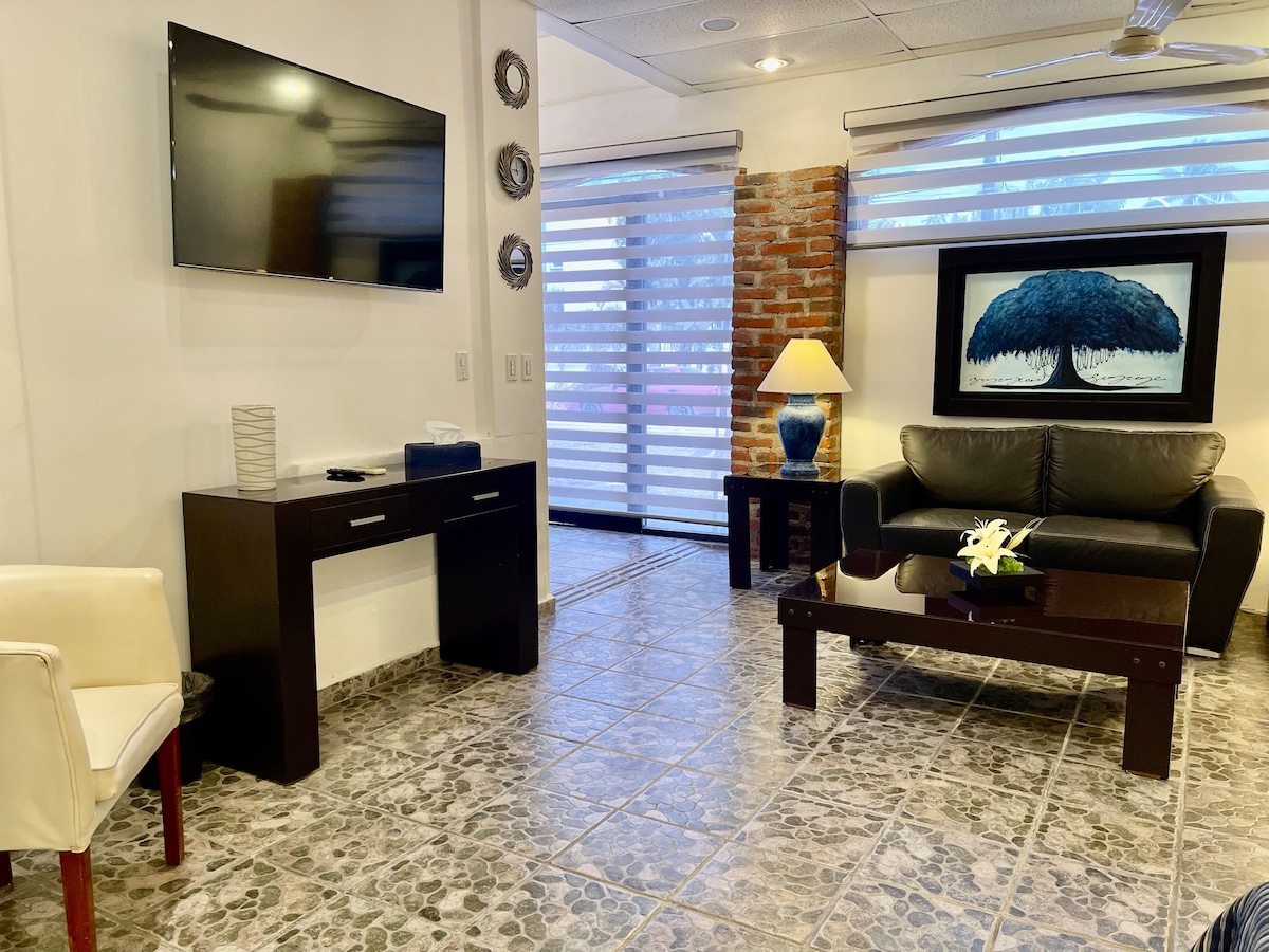 Appartement complet avec terrasse extérieure, son design le rend unique dans la ville ; car il s'inspire d'un environnement rural californien, mais avec tout le confort nécessaire pour passer des vacances incroyables. Il est confortable et accueillant, qui dispose d'un lit Queen size, d'une salle de bains complète, d'un parking privé, d'une cuisine équipée où vous trouverez un délicieux café régional que vous pourrez déguster sur sa belle et confortable terrasse extérieure. Ce sera un plaisir de vous recevoir !
