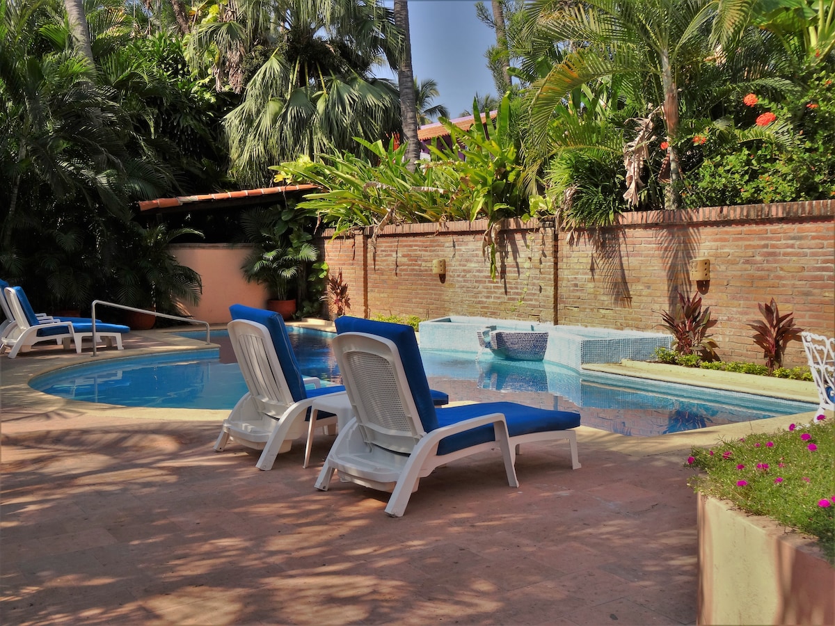 Cette petite maison originale et colorée dispose de deux chambres (une double, une avec lit king size), de deux salles de bains et d'un coin cuisine/salle à manger qui s'ouvre sur un patio couvert, parfait pour les repas en plein air. Toutes les chambres donnent sur la piscine et disposent de meubles peints à la main, d'art indigène Huichole et d'affiches de films découpées de manière ludique du cinéma mexicain vintage. Cet espace amusant célèbre la fille fabuleusement éclectique et créative de la famille, Psarah. La plage est accessible en descendant le sentier de briques, à travers les fleurs et les arbres fruitiers.