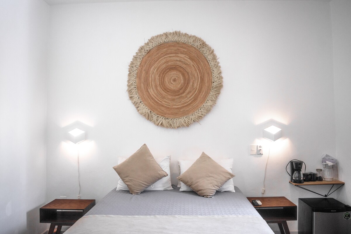 La suite Pelican à Casa Vive Tu Vida est nichée juste derrière le bar Atico Hookah dans le centre de la ville. Ici, vous ferez l'expérience de toute l'énergie de Sayulita et d'une fabuleuse musique live chaque soir jusqu'à minuit. Ce studio intérieur est magnifiquement conçu pour préserver le style architectural mexicain et la culture de Sayulita. Ce studio spacieux contient un lit queen size confortable, une salle de bains privée avec une grande douche et bien plus encore !