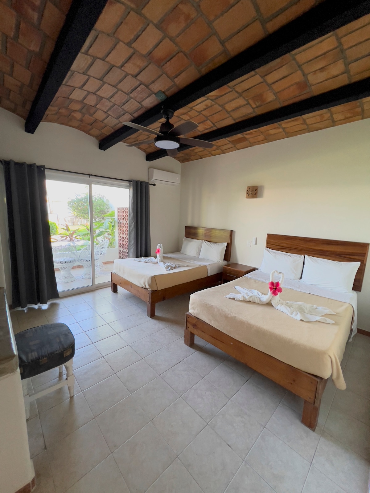 Situé à Punta de Mita, l'hôtel La Quinta del Sol est juste en face de la plage avec vue sur l'océan depuis les 7 chambres de type studio. Les chambres au niveau du patio sont équipées de 2 lits Queen Size (maximum 4 personnes), d'une cuisine, de la climatisation, du Wi-Fi et d'une vue fantastique depuis de grands balcons partagés. Les équipements comprennent une terrasse sur le toit et un club de plage avec des hamacs, des parasols, des palapas et un barbecue. À proximité de nombreux spots de surf incroyables et à 3 minutes à pied des restaurants et boutiques. Les hôtes vivent sur place. Profitez d'un appartement privé avec la facilité d'un hôtel !