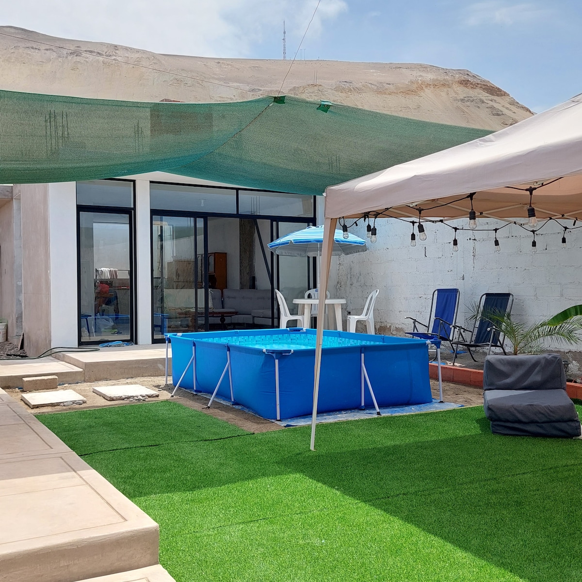 Découvrez notre maison avec piscine, idéale pour les familles et les groupes d'amis. Cuisine équipée, salle à manger avec vue sur la piscine, espace barbecue, trois chambres avec salle de bain dans chaque chambre et une salle de bain sociale, garage, eau potable, et sécurité. Emplacement pratique proche de la plage et de la Camaná. Réservez maintenant !