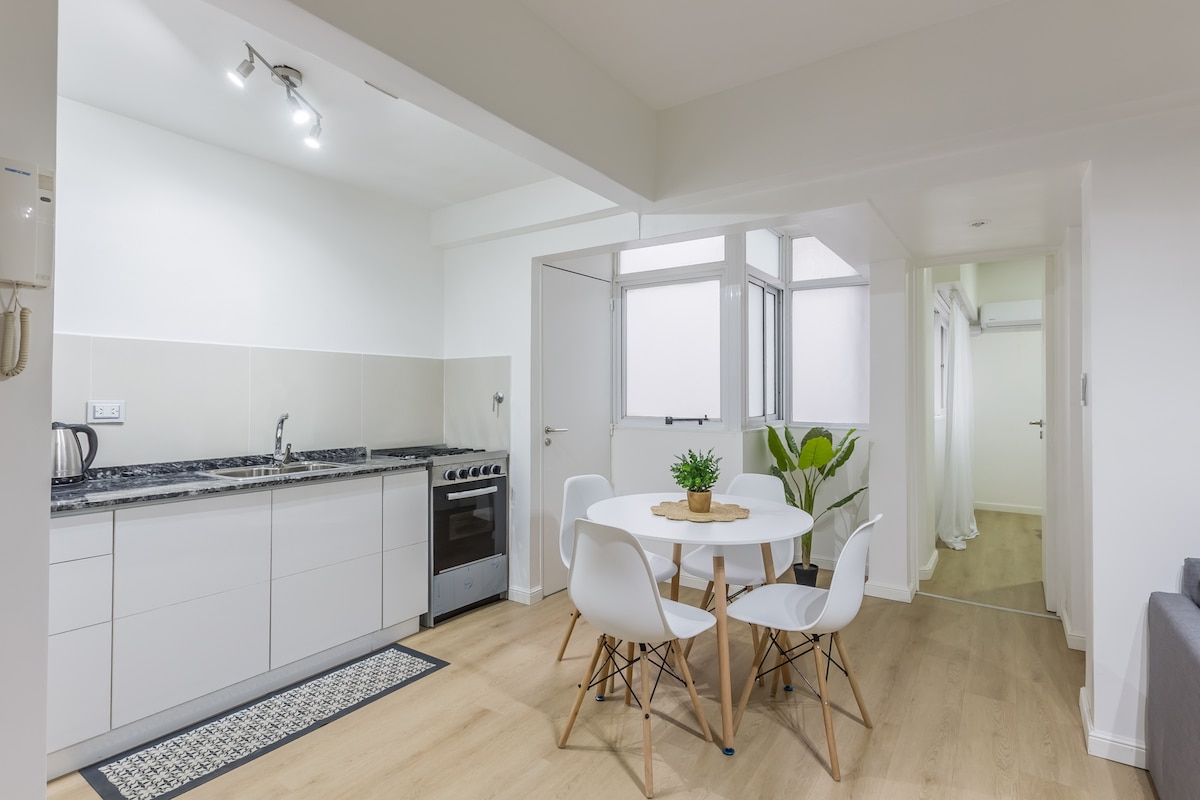Studio lumineux et clair dans l'un des plus beaux quartiers de Buenos Aires. Studio confortable avec vue panoramique. Décoration chaleureuse et moderne dans un immeuble de 10 ans. Très bon chauffage en hiver et très bonne climatisation en été (nouveau split inverter silent air) Très bon wi-fi ! Lit avec sommier king de 2 m x 2 m. Neuf et super confortable !