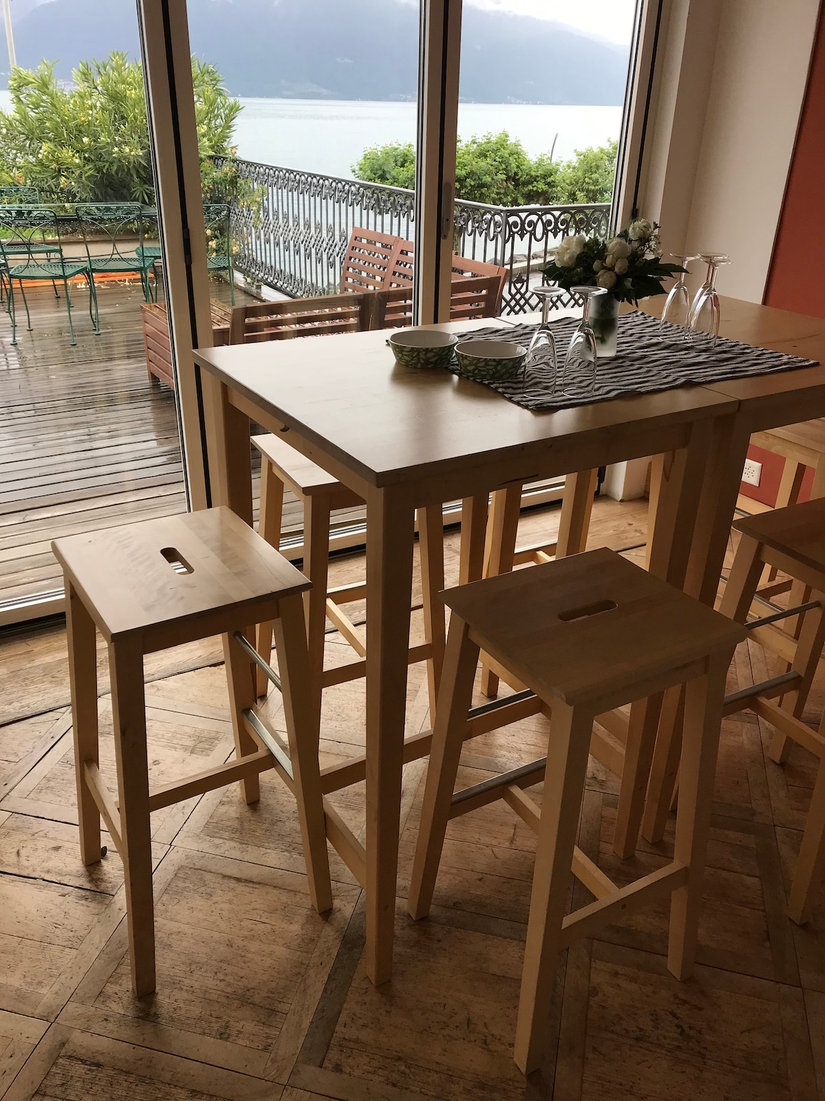 Notre "Duplex" au dessus du restaurant ZeFork peut accueillir jusqu'à 5 personnes plus 2 enfants. Au 1er étage, une suite avec une grande salle de bain et au 2ème étage, deux chambres séparées avec douche/WC communs et une cuisine avec salle à manger. La cuisine a un accès direct à une très grande terrasse partagée avec bar et grill. Vue sur le lac depuis toutes les chambres. Baignade dans le lac directement devant la maison. Zone sans voiture, transports publics à proximité, vélo recommandé.