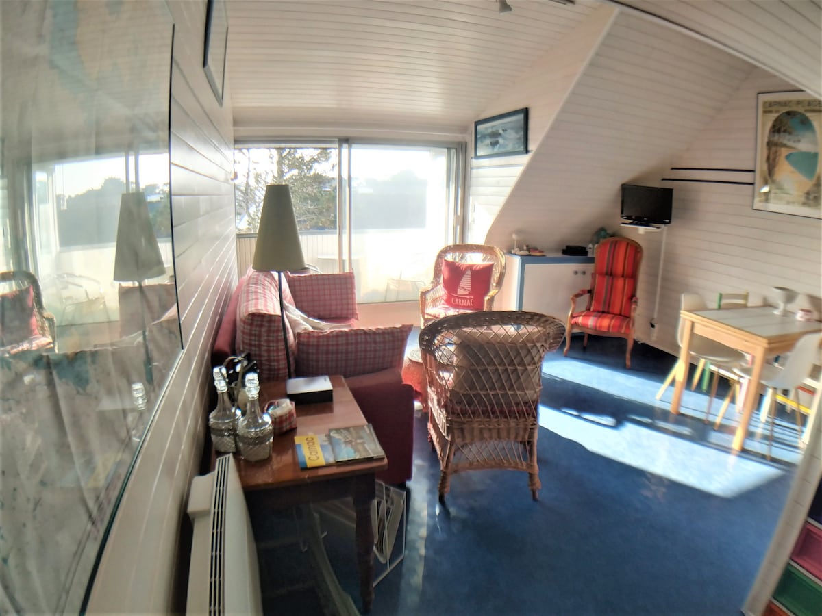 À louer magnifique appartement studio cabine 23 m2 complètement rénové en 2022 + grande terrasse au 1er étage face à la mer, grande plage de Carnac. Vue exceptionnelle sur la grande plage et la baie de Quiberon. Parking privatif dans la résidence. Local à vélo , fermé à clé. Appartement composé de : - 1 entrée cabine, avec 2 lits superposés - 1 salle d’eau rénovée, - 1 WC - 1 séjour/salon - 1 cuisine aménagée et équipée Restaurants, boulangerie à 5 min Super U à 500m