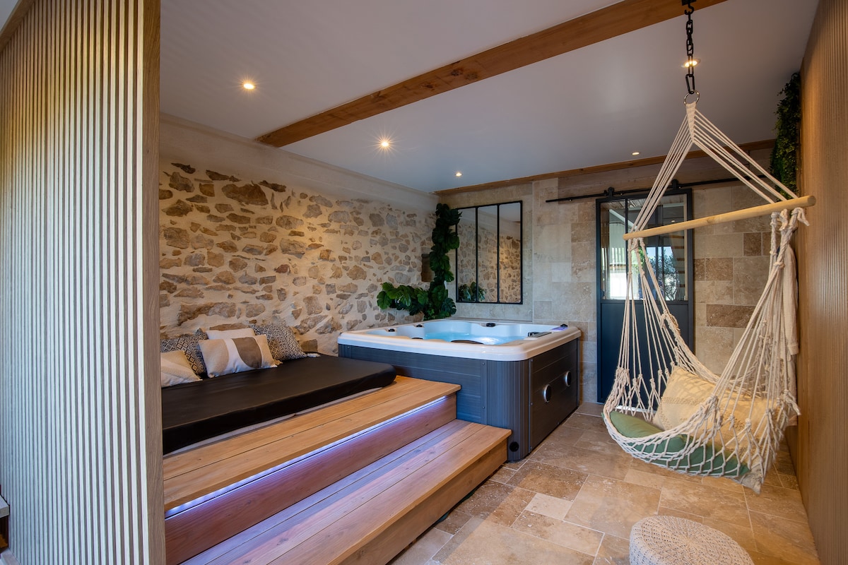 Evadez-vous dans le 3ème de nos gîtes de charme pour 2 à 4 personnes, à 2 pas de Lyon, dans le petit village de Vaulx Milieu . Ce havre de paix combine le charme rustique avec le confort moderne pour une escapade inoubliable et unique. Détendez vous dans notre spa privé au rez de chaussée avec jacuzzi 4 places et sauna infrarouge. A l'étage partie habitation climatisée avec cuisine, salon-salle à manger, salle de bain et 2 chambres. Logement entièrement privatif! FETES NON AUTORISÉES