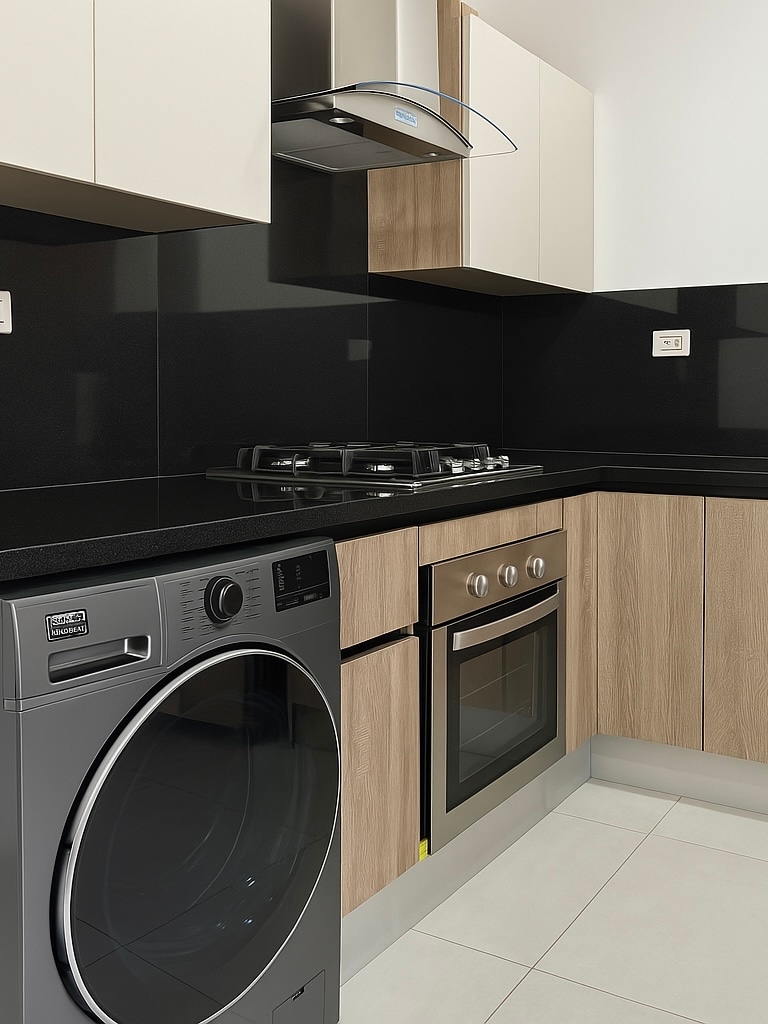 Détendez-vous dans un espace calme et élégant, beau balcon donnant sur la ville. Piscine avec vue sur la mer, Jacuzzi avec vue sur la ville. BBQ, table de billard, aire de jeux pour enfants, cinéma, salle de sport, espaces de détente. Concierge, sécurité 24 h/24 et 7 j/7, parking. Appartement entièrement meublé, cuisine équipée neuve. Canapé-lit pour recevoir des visiteurs pendant votre séjour.