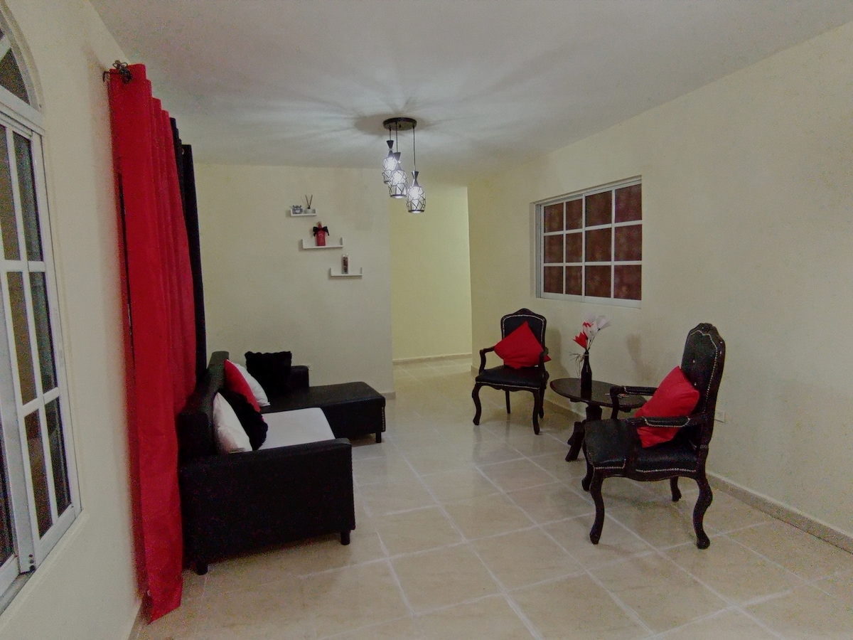Appartement luxueux et moderne avec : Chambre, salon, salle à manger, buanderie, climatisation, parking, piscine, espace social et caméra de sécurité. Heures d'arrivée flexibles et accès facile aux transports en commun. Vous vous sentirez dans un environnement sûr et chaleureux, entouré d'élégance et surtout soucieux de désinfecter chaque zone et élément. "Votre santé est primordiale pour nous."