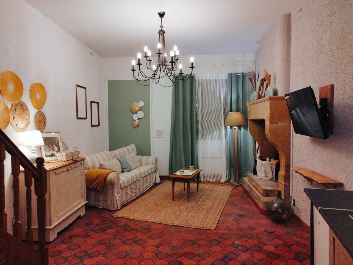Petit coin paisible au cœur de la ville Thermale de Bains les Bains. Ce logement de 37m2, avec jardin privatif clos, se situe au rez-de-chaussée, à 150 m des Thermes, à proximité des commerces. Cuisine entièrement équipée avec lave-vaisselle, four, micro-onde, TV, réfrigérateur, cafetière filtre et Dolce Gusto, ustensiles de cuisine. Chambre lit double 140x190 avec placards, TV. Salle de bain: grande douche, lave-linge séchant, radiateur sèche-serviette. Wifi gratuit..
