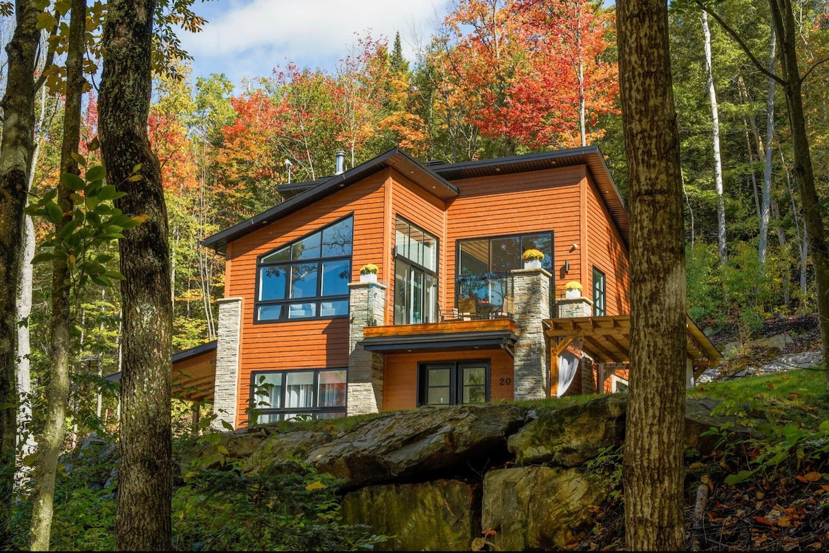 Notre chalet en forêt nordique est parfait pour du temps de qualité en couple (ou avec un enfant), ou une retraite de travail (WiFi haut débit). Intérieur en bois chaleureux et confortable. Fenêtres pleine hauteur avec vue imprenable sur une vallée boisée. Cuisine et salon à aire ouverte pour cuisiner tout en conversant. Foyer avec grill et table à manger extérieure. À seulement 70 minutes en voiture de Montréal. Le lac est à 25 minutes à pied si vous vous garez à proximité.