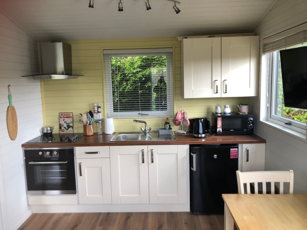 Nos Luxury Lodges attendent ceux qui recherchent une escapade romantique totalement unique. Vous vous trouverez dans un cadre rural, mais ne vous y trompez pas, la ville de Killarney est à seulement 1,5 km. Votre lodge dispose d'une chambre spacieuse avec lit King Size (européen) et mobilier sur mesure. Il y a une salle de bains complète avec douche électrique. La mini-cuisine a tout, d'une plaque de cuisson à une machine Nespresso. Le patio chauffé privé avec barbecue est parfait pour se détendre le soir au son de la rivière.